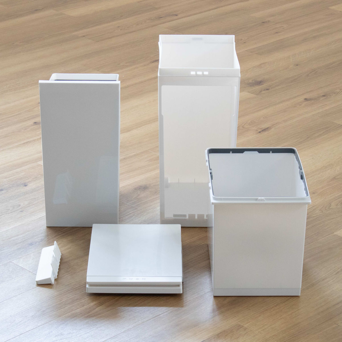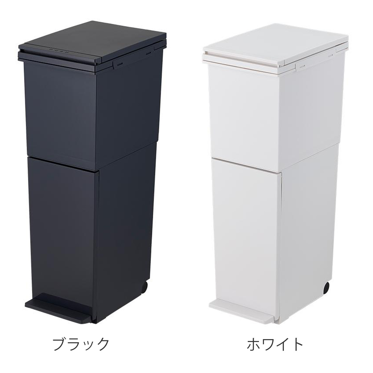 | 材質 | フタ・上本体・下本体・フレーム・袋止め・キャスター:PP、ペダル、プッシュレバー:PS、下本体パッキン・滑り止め:PE、フタパッキン:シリコーンゴム、バネ:ステンレス鋼 |