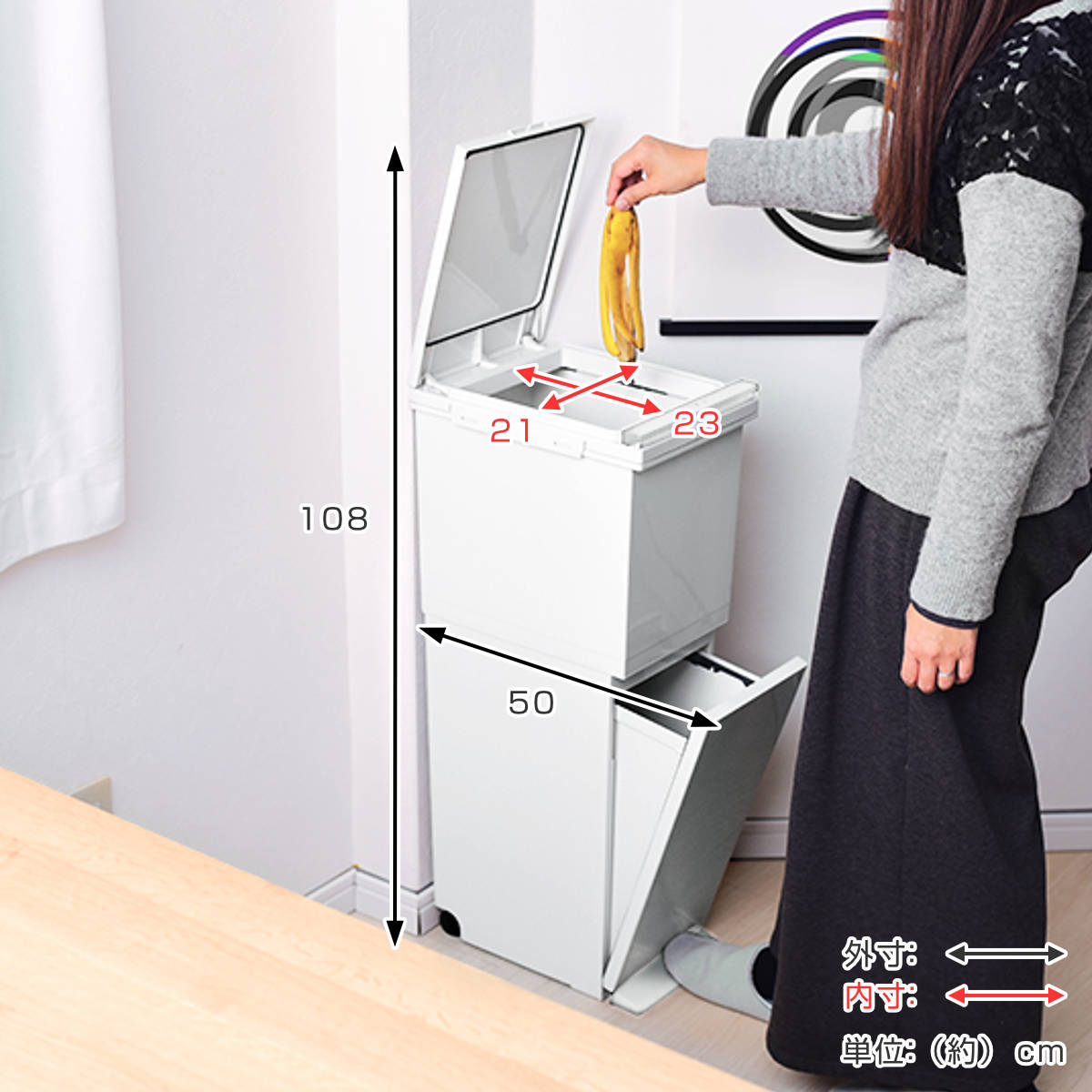 ちょっとした隙間にも置けるスリムな幅冷蔵庫横・シンク横・食器棚横など、限られたスペースにもすっきり設置できるスリムな幅です。デッドスペースを有効活用しながら、分別ゴミ箱をスマートに置けます。