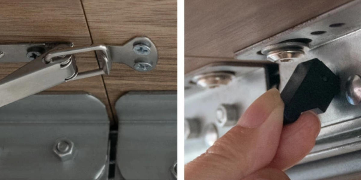 【1】天板裏に2か所あるロックを外します。