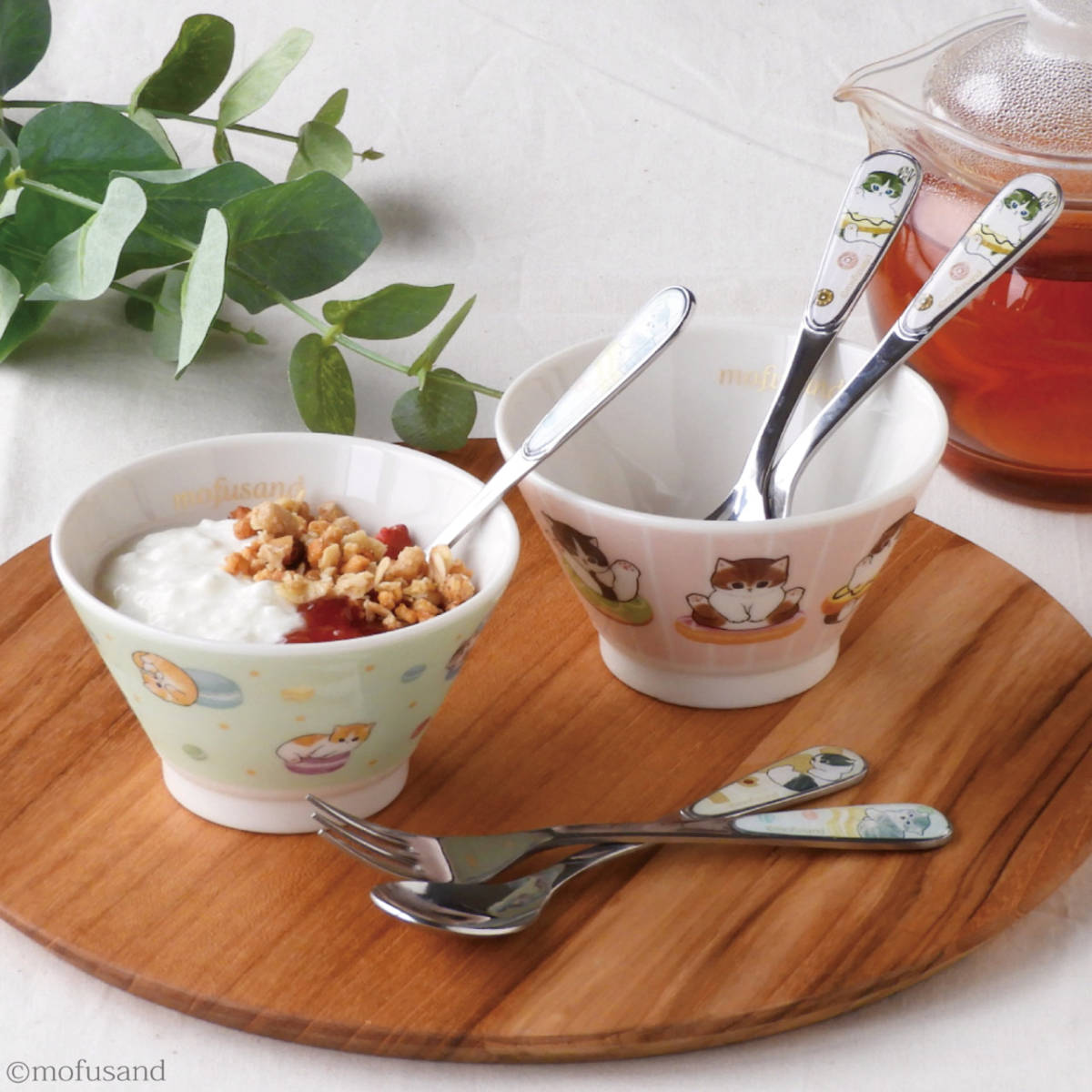 優しい色合いの「スイーツにゃん」シリーズ可愛らしいにゃんことスイーツ柄でハッピーな気分にさせてくれるmofusand(モフサンド)「スイーツにゃん」シリーズのテーブルウェアです。新生活に揃えたくなる充実のラインナップで、シリーズで揃えると食卓に統一感が生まれ、毎日の食事やおやつ時間がより楽しくなります。