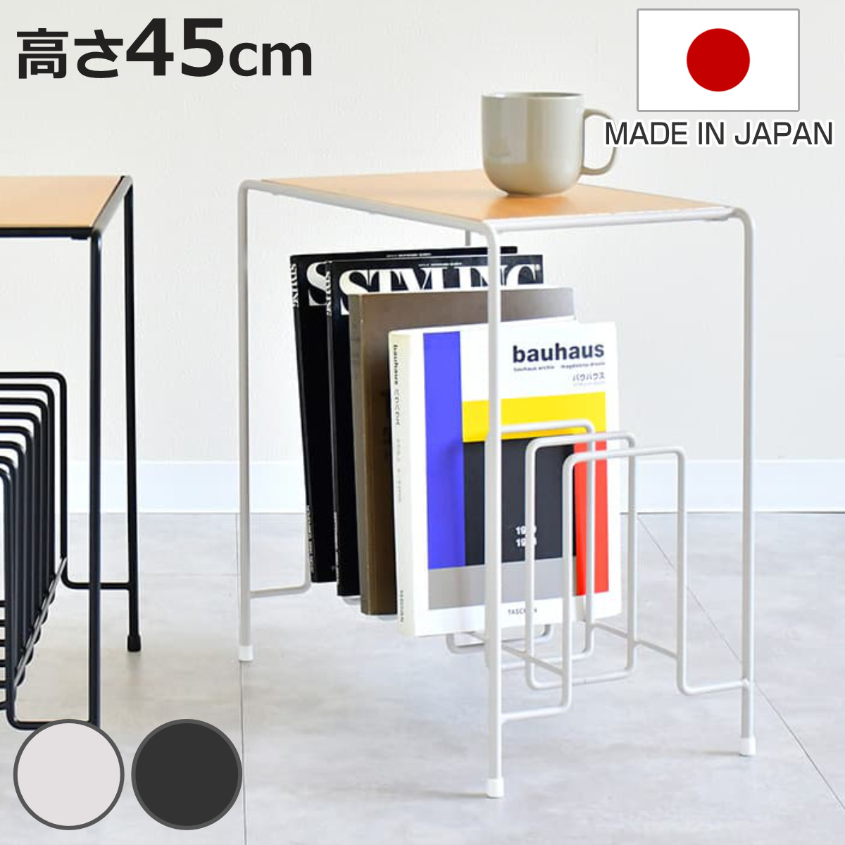 サイドテーブル 高さ45cm マガジンラック付き 木製 日本製 ( ミニテーブル テーブル スリム スチール ソファサイド ベッドサイド 収納 本 雑誌 )