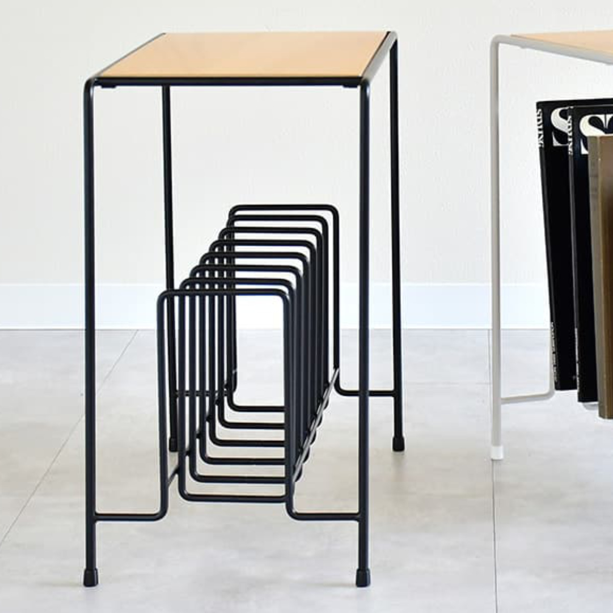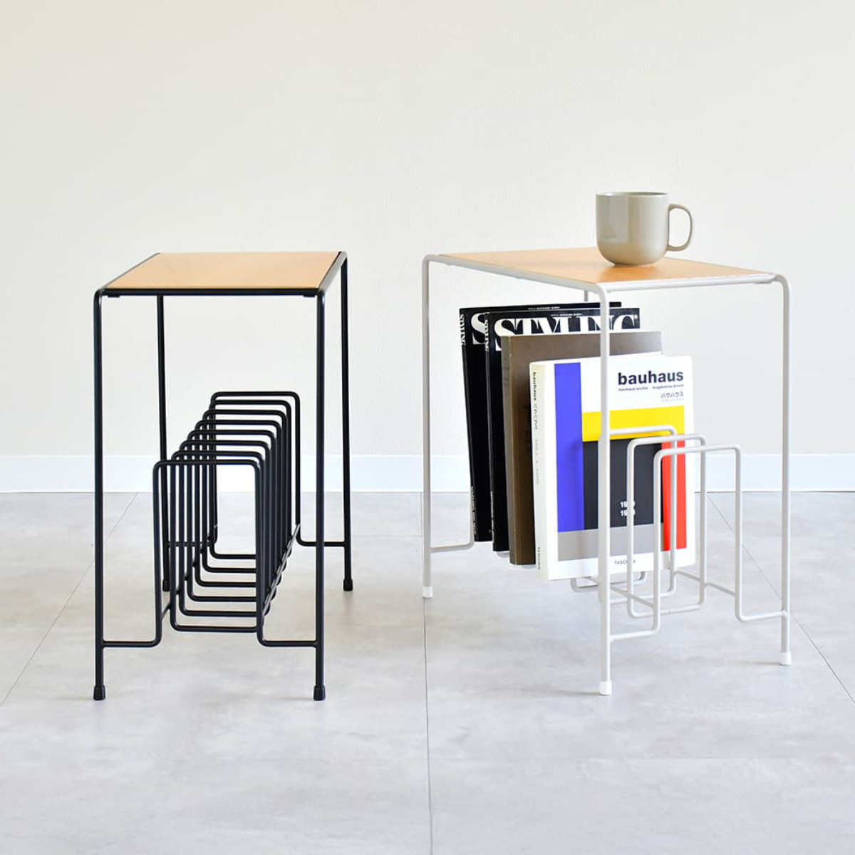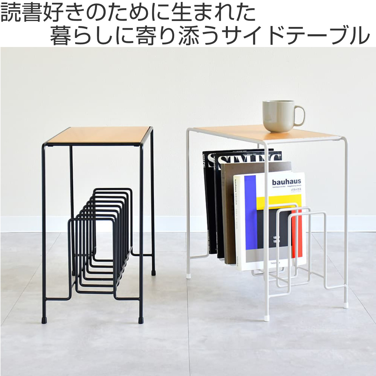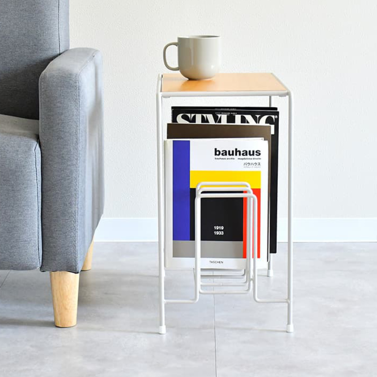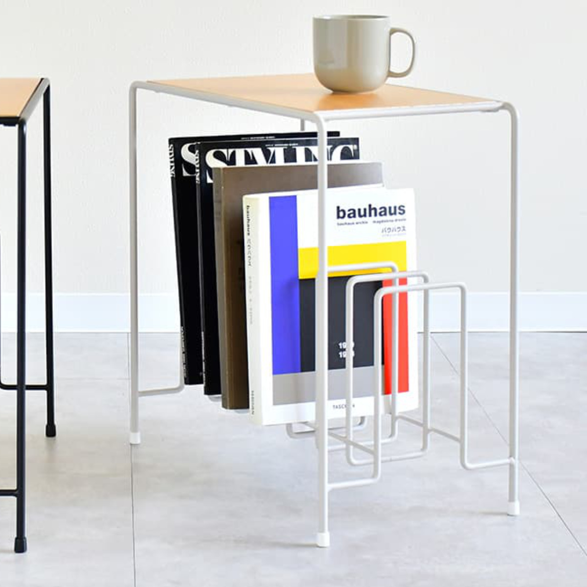 ●美しいラインのスチールマガジンラックが、軽やかさと収納力を両立します。