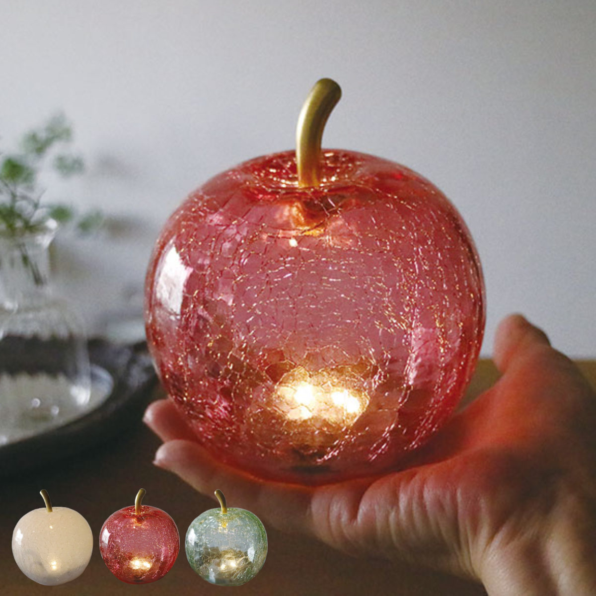 癒しを灯すクラックガラスのLEDランプ りんご型