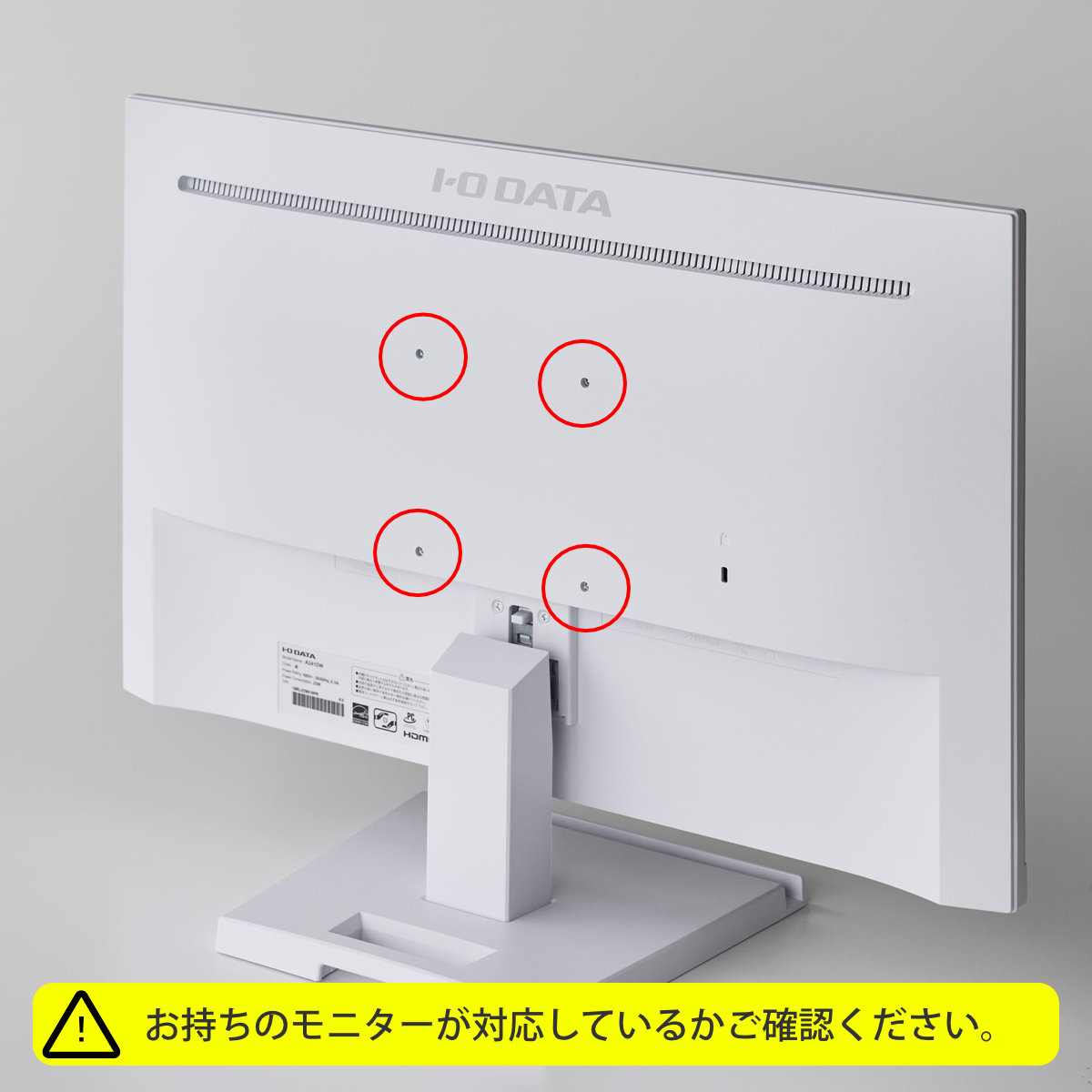 | 内容量 | 1個 付属品:木ネジ×3、石こうボードピンセット(取り付けピース×3、クギ×9、キャップ×3)、モニター背面固定用ネジ(M4×10mm・M6×10mm)×各4、六角レンチ、緩衝材シール×2 |
