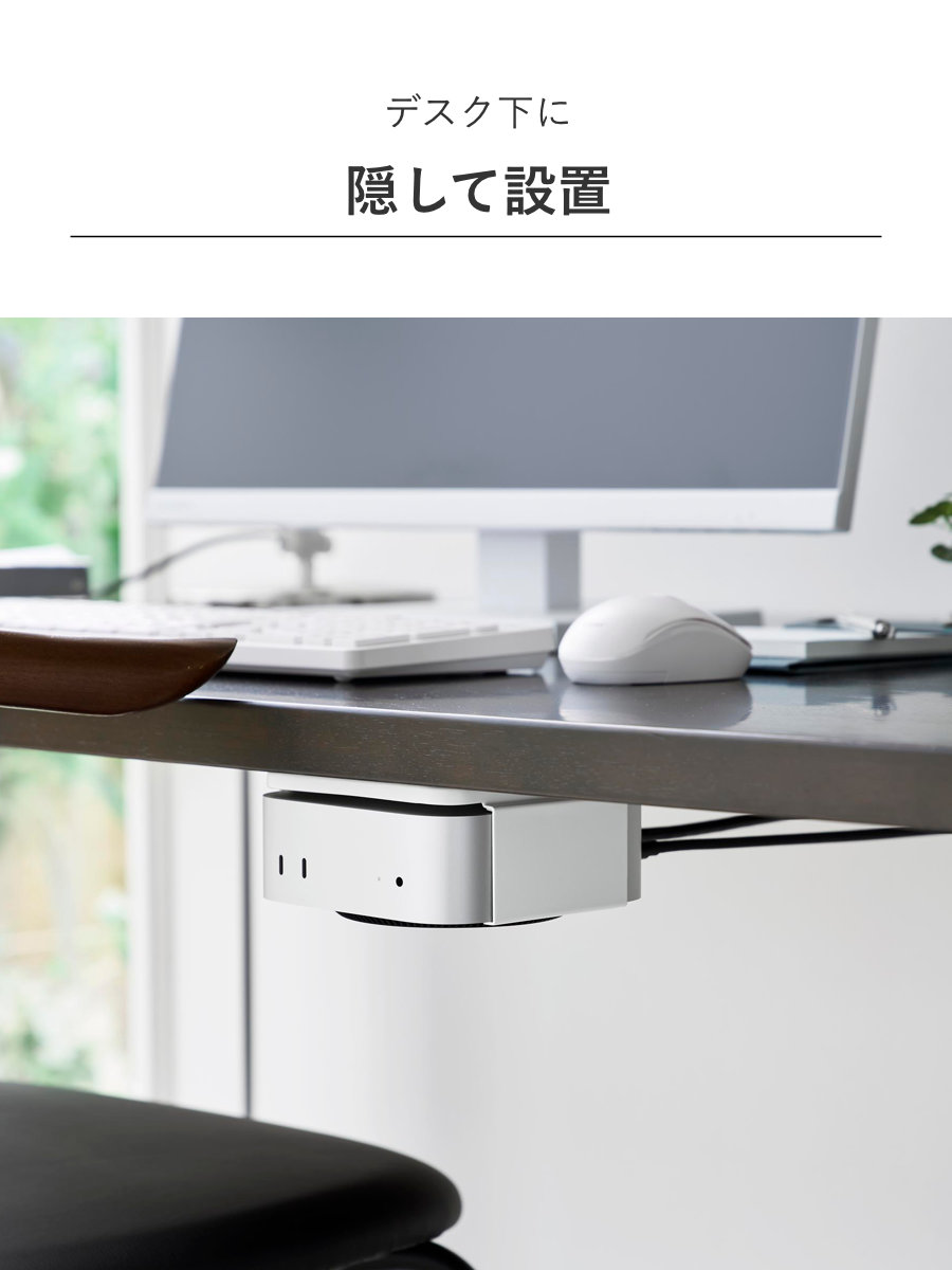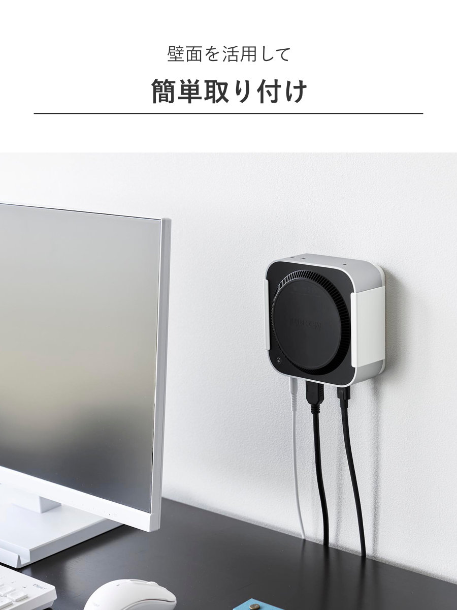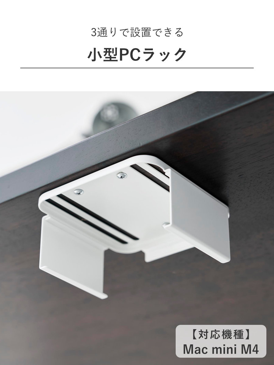 | 備考 | 【取り付け可能な天板】 木製・積層合板製の天板(厚さ1.5cm以上)のデスクやテーブル、キッチンカウンター 【取り付け可能なパソコンモニター】 モニター背面VESA規格対応ネジ穴のピッチ:縦10cm以内×横7.5・10cm 【取り付け可能な壁】 石こうボードピン使用時:壁紙・布壁紙・ビニール壁紙貼りなどの石こうボード、薄ベニヤ 木ネジ使用時:柱・板壁(厚さ1cm以上)・プリント合板(裏側に水平にサンがある場所)・裏側に下地材(間柱)が入っている壁 【対応機種】 Mac mini M4 |