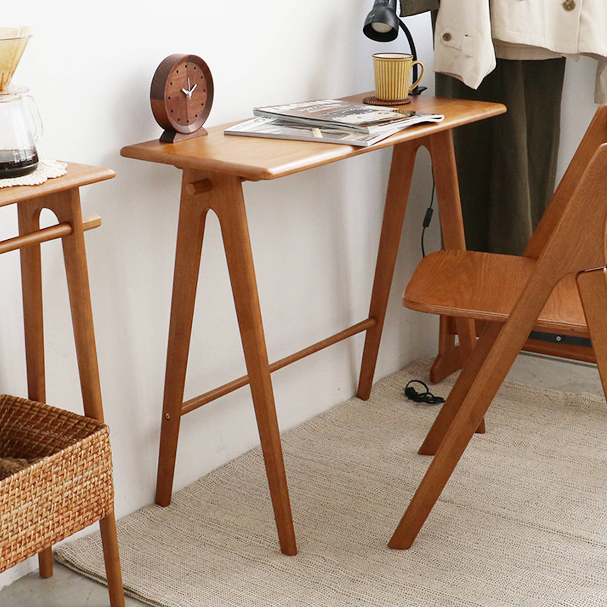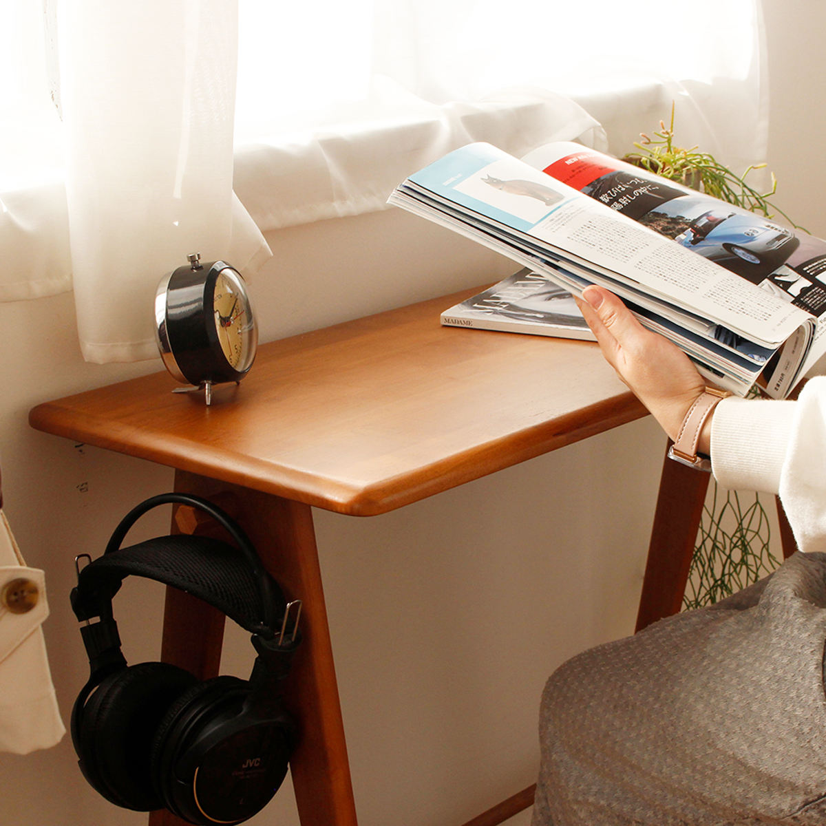 天然木のぬくもり感じるデスクです。幅80cmのコンパクト設計で、リビングの一角や玄関横など、限られたスペースにもすっきり収まります。直線を基調としたシンプルなフォルムにナチュラルな木目と軽やかなデザインが調和し、空間に上品なアクセントを添えます。