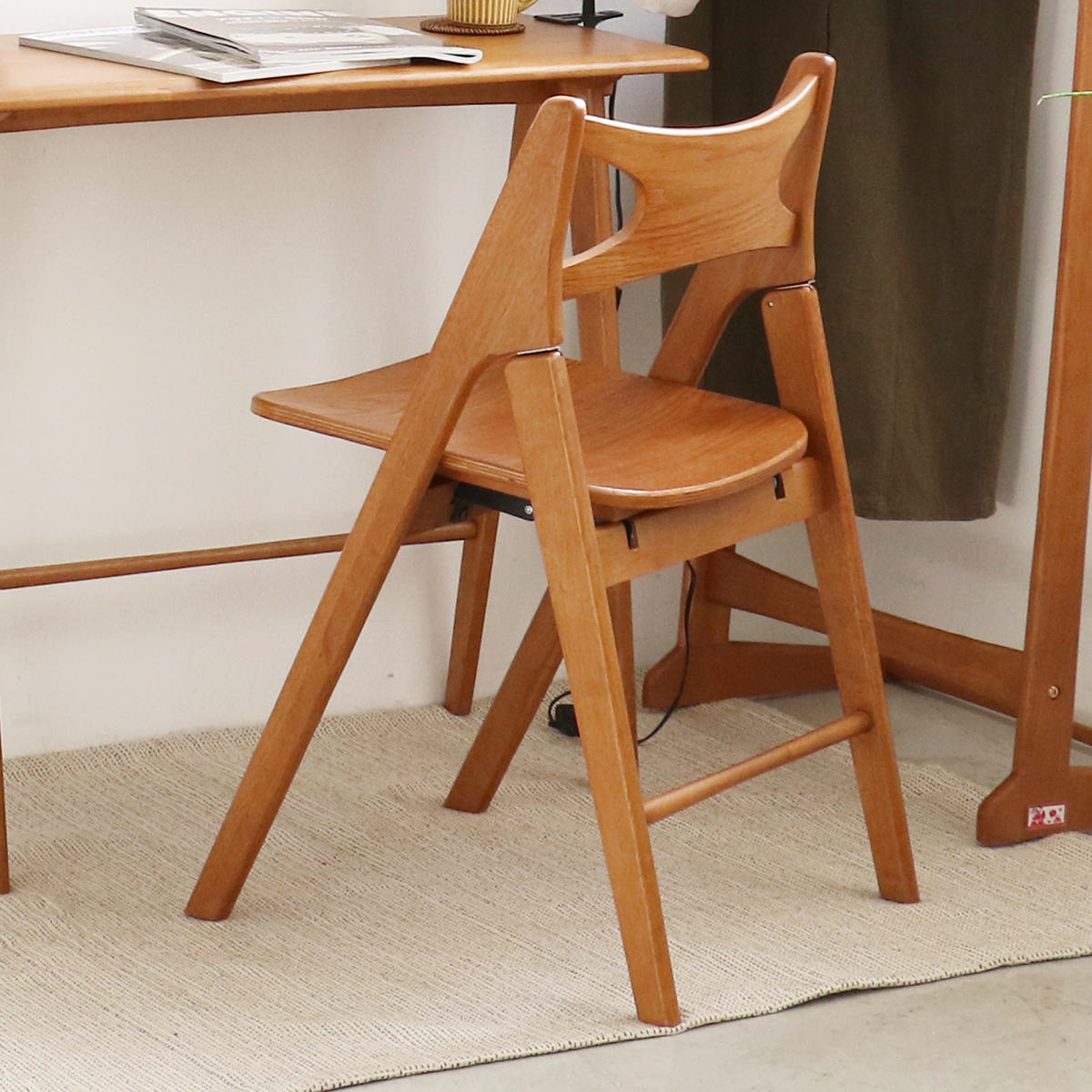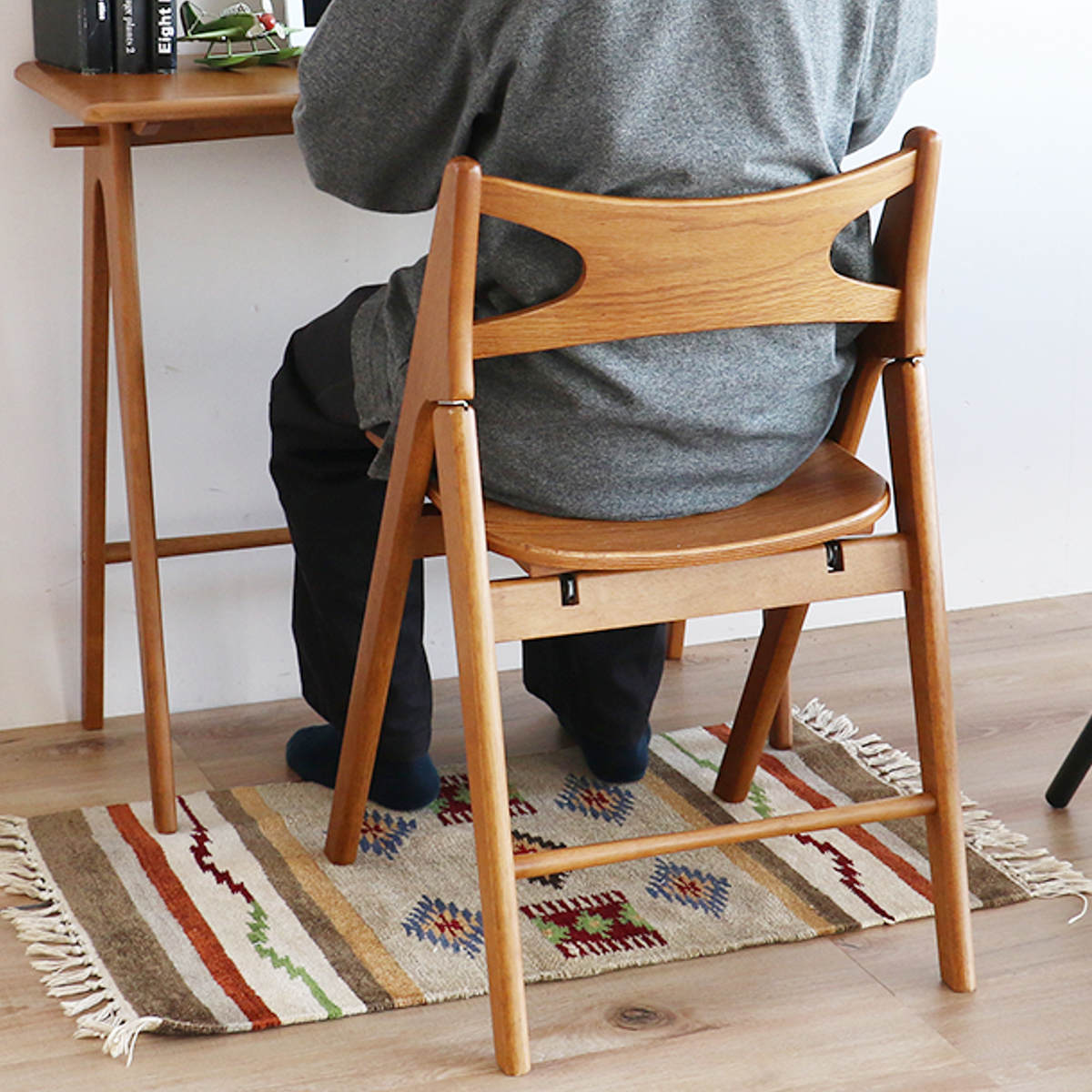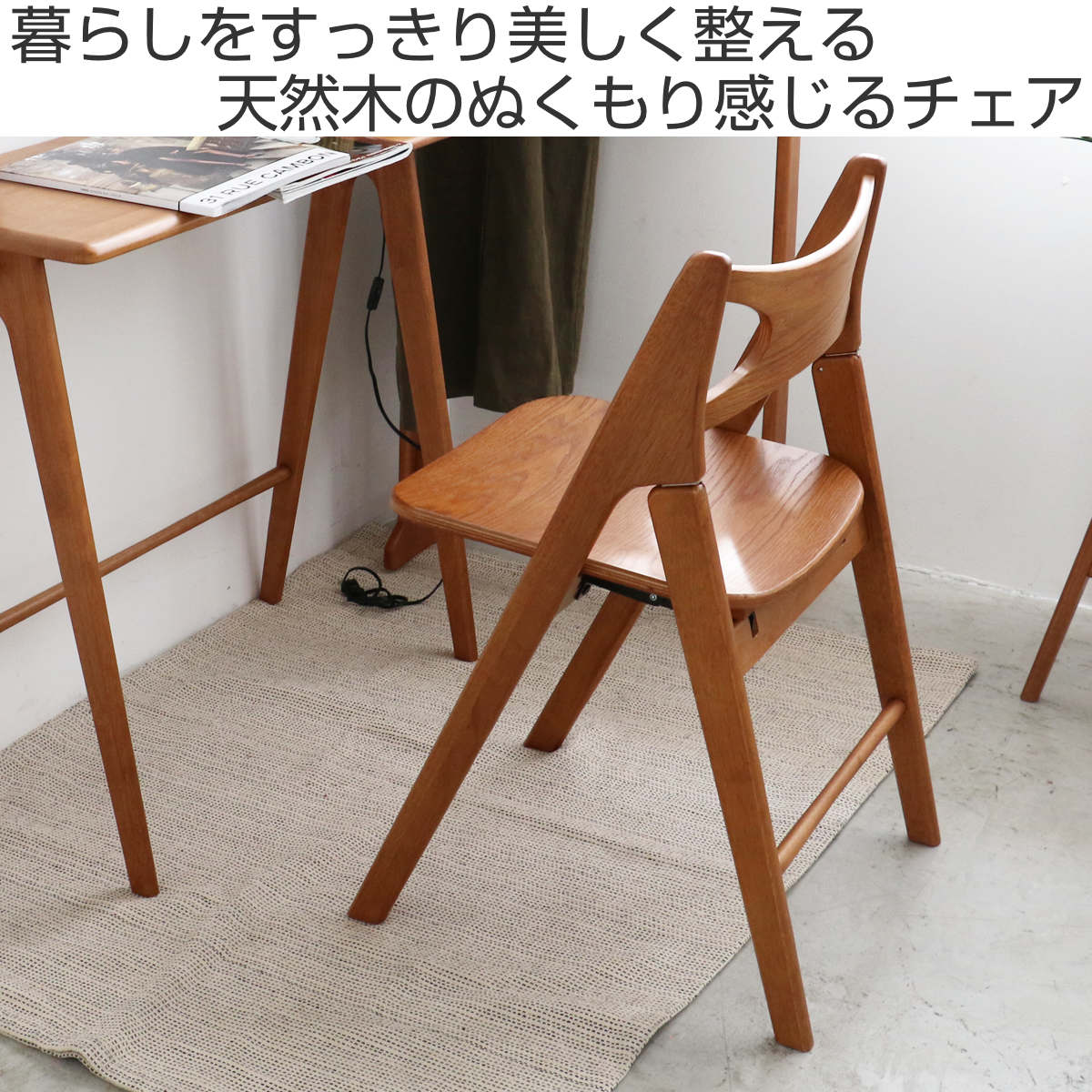 天然木のぬくもり感じる折りたたみチェアです。 デスクと合わせて作業用チェアとしてはもちろん、リビングやダイニングでの急な来客時にも活躍するマルチな一脚です。