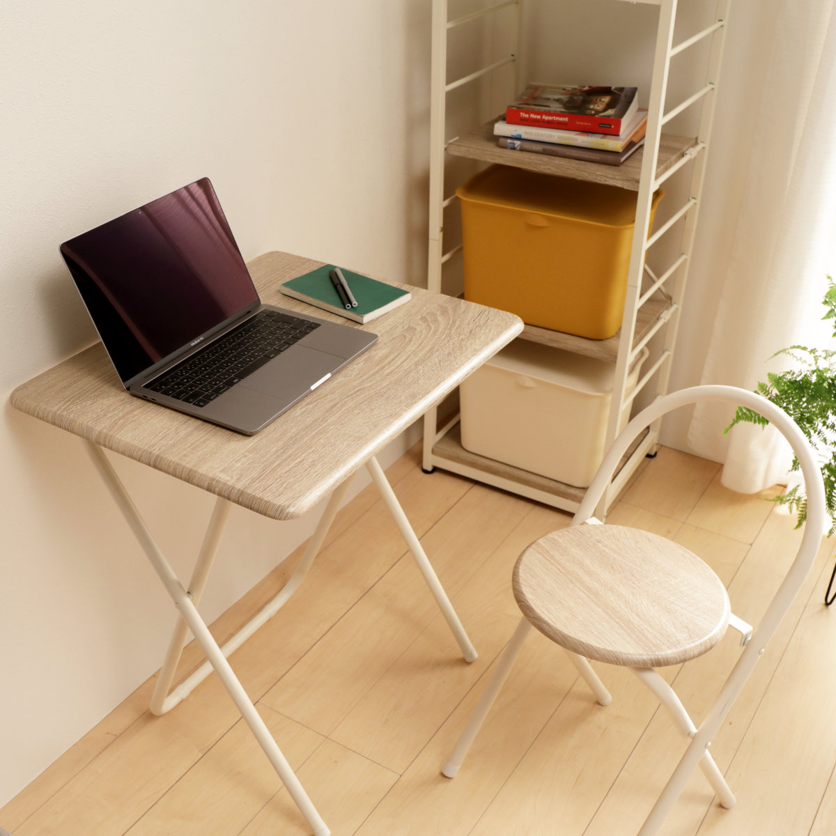 在宅ワーク デスクセット テレワーク 作業台 軽い 背もたれ 勉強机 デスクチェアセット チェアー イス いす スツール 簡易椅子 簡易机 パソコン 丸 リビング スリム リモート 家事台 おしゃれ お洒落 オシャレ インテリア 家具 ワンルーム ひとり暮らし 一人暮らし 便利 勉強デスク PCデスク LH15529