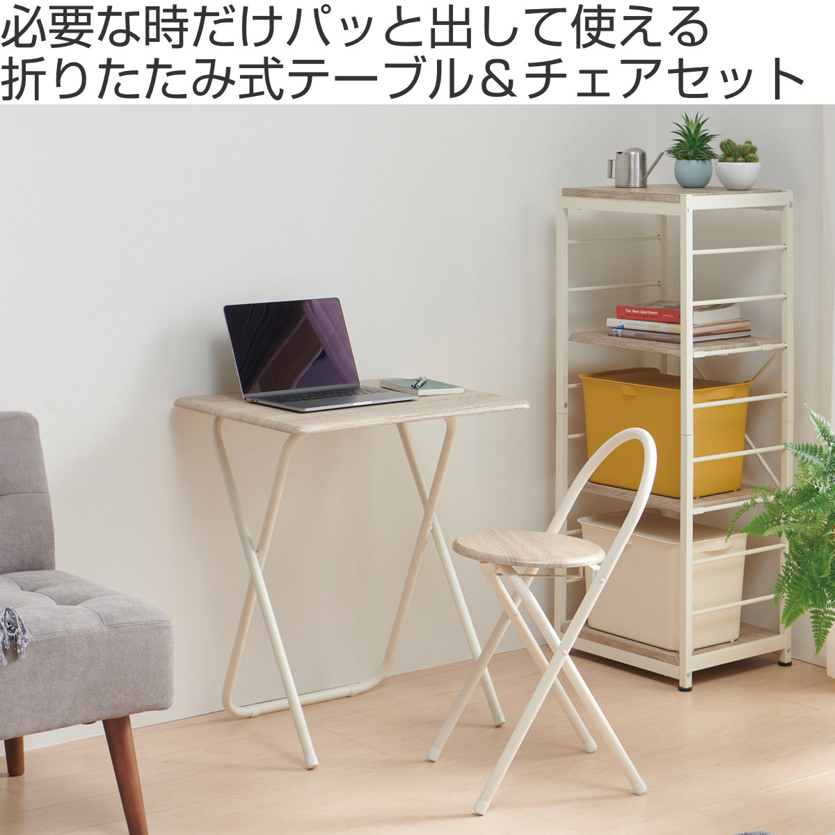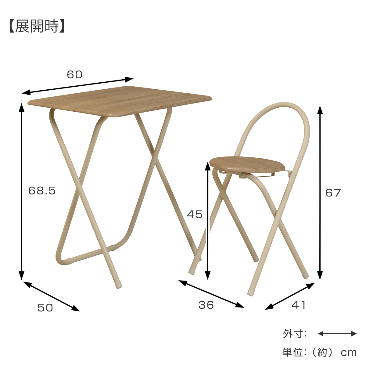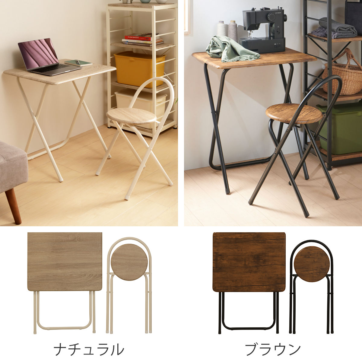 デスク チェア セット 幅60cm 折りたたみ椅子 軽量 1人暮らし ( 机 椅子 折り畳み 折りたたみデスク コンパクト 収納 省スペース 完成品 木目調 )