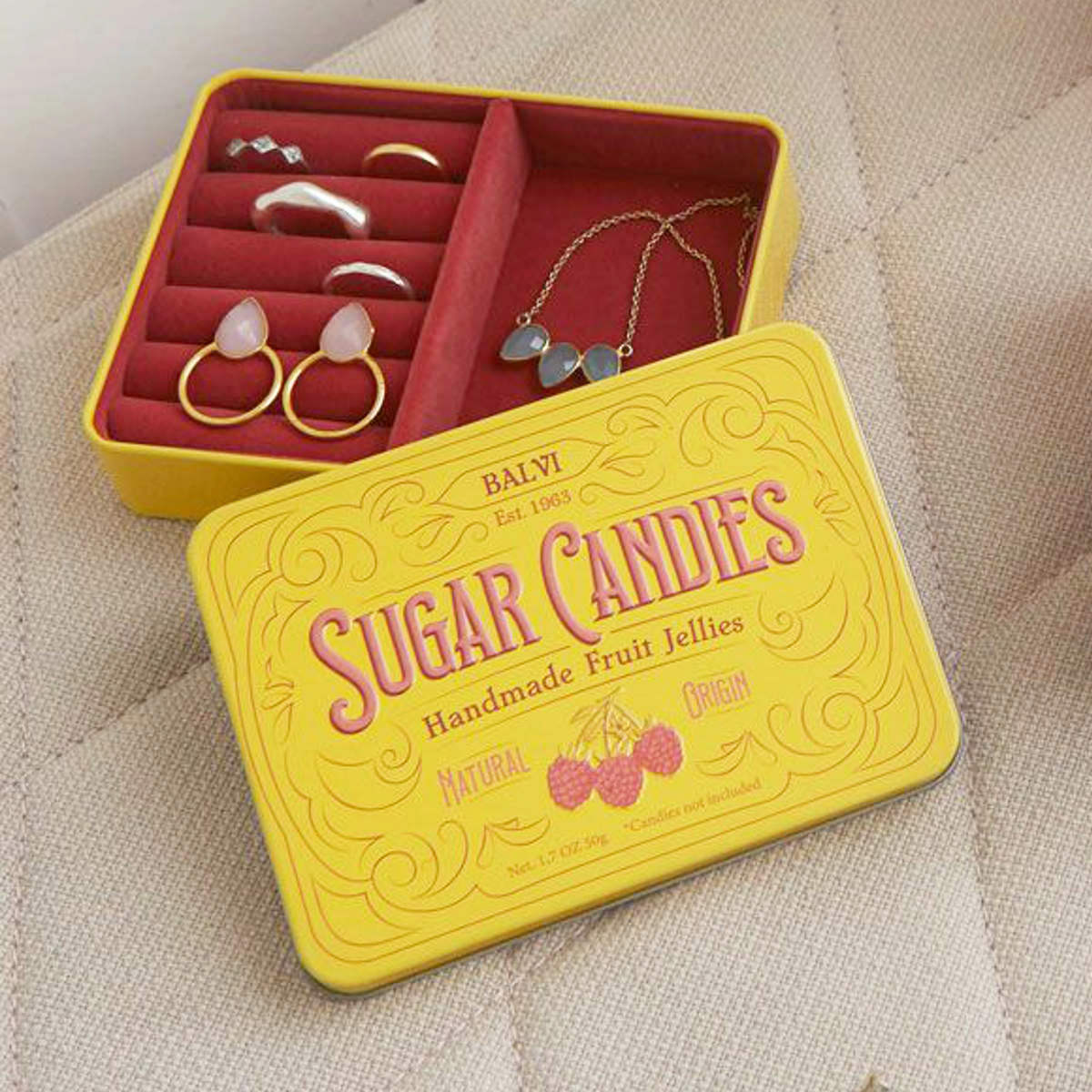 海外スイーツのようなジュエリーボックス海外のお菓子を思わせるレトロでかわいいジュエリーボックスです。パッと目を引くイエローカラーが、飾るだけで空間を明るくしてくれます。