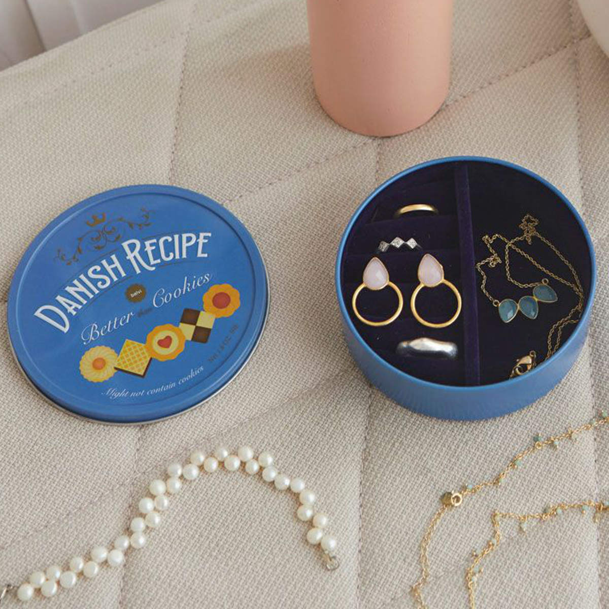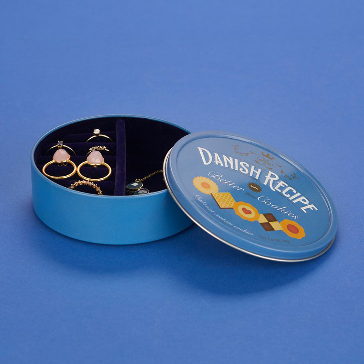 海外スイーツのようなレトロデザイン海外のお菓子を思わせるレトロでかわいいジュエリーボックスです。さわやかで落ち着いたブルーが上品な印象で、どんなインテリアにもなじみます。