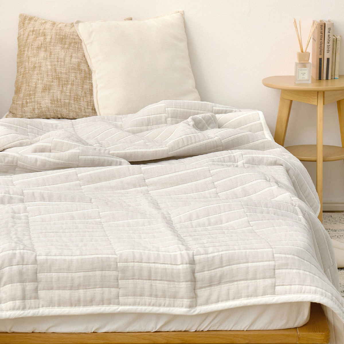 インド綿ガーゼケット ライン ブランケット ( ガーゼケット 綿100% リバーシブル 膝掛 寝具 )