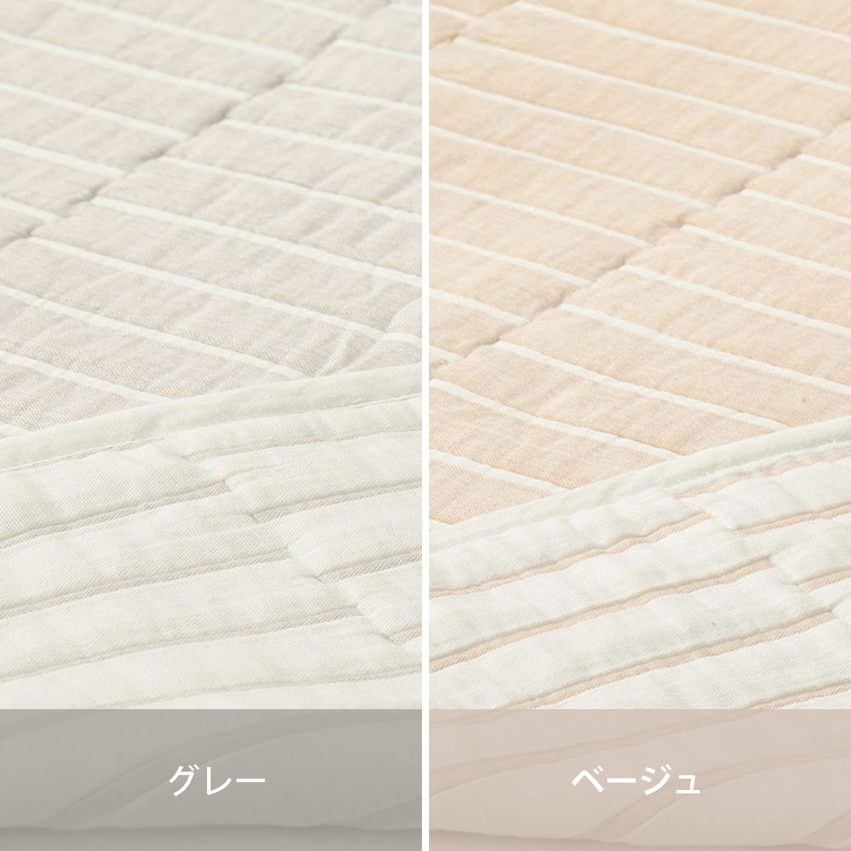 側生地には綿100%のガーゼ生地を使用し、ふんわりやさしい肌ざわりです。通気性・吸湿性に優れているため、汗ばむ季節でもさらっと快適にお使いいただけます。自然素材ならではの心地よさが、日々のリラックスタイムに寄り添います。