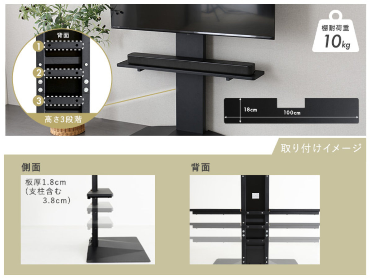| 材質 | テレビスタンド:スチール サウンドバー:MDF |