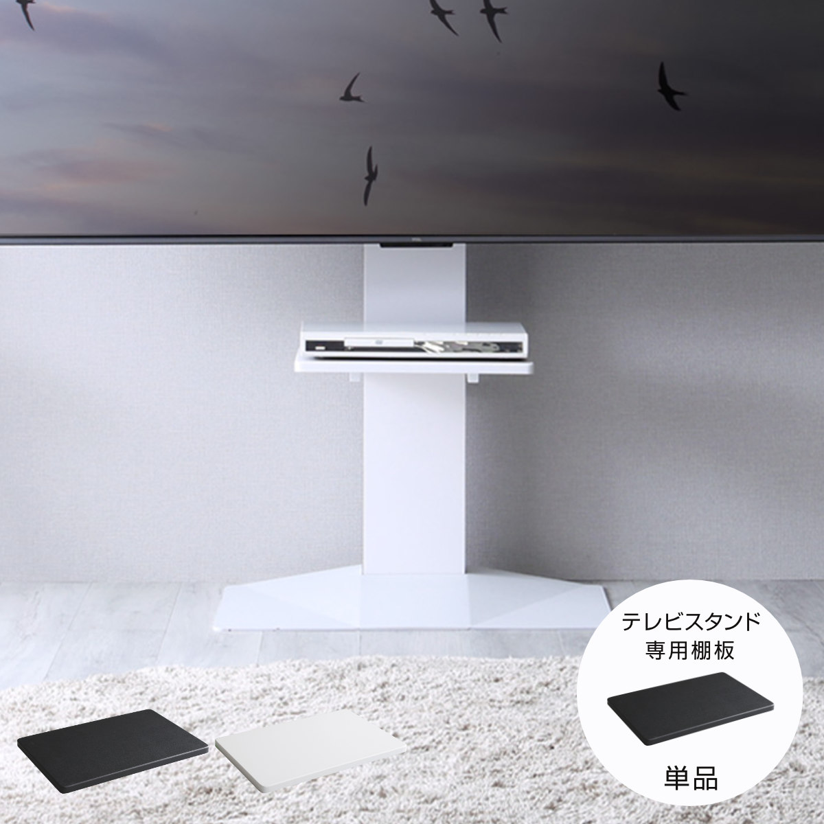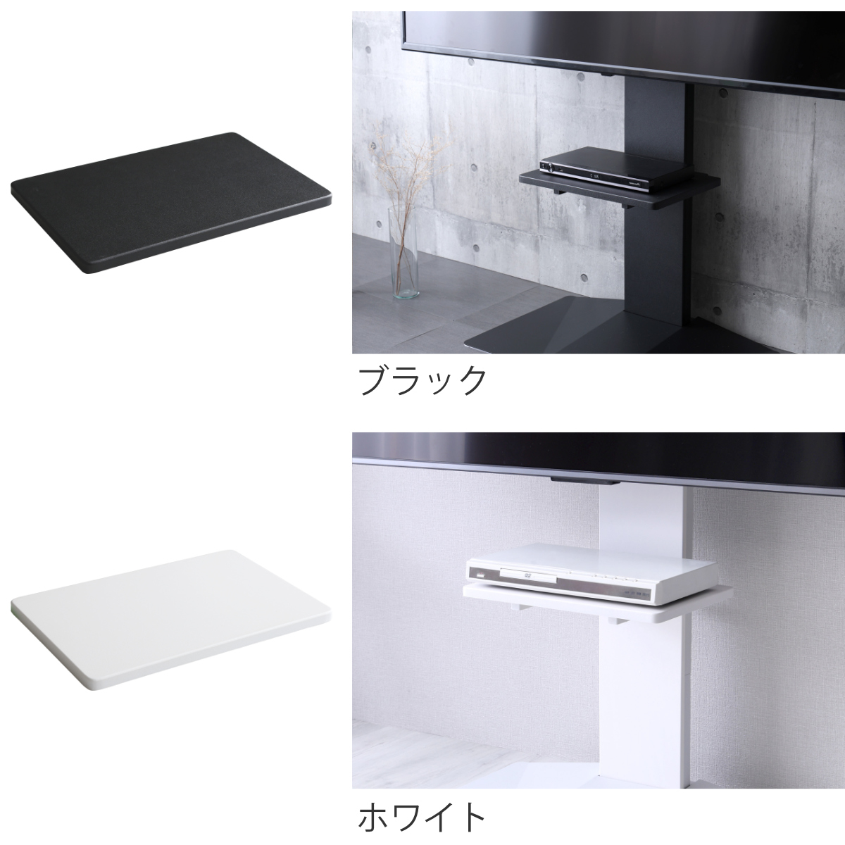後付けでも美しく、専用棚板別売りの壁寄せテレビスタンドに設置が可能な、専用棚板です。