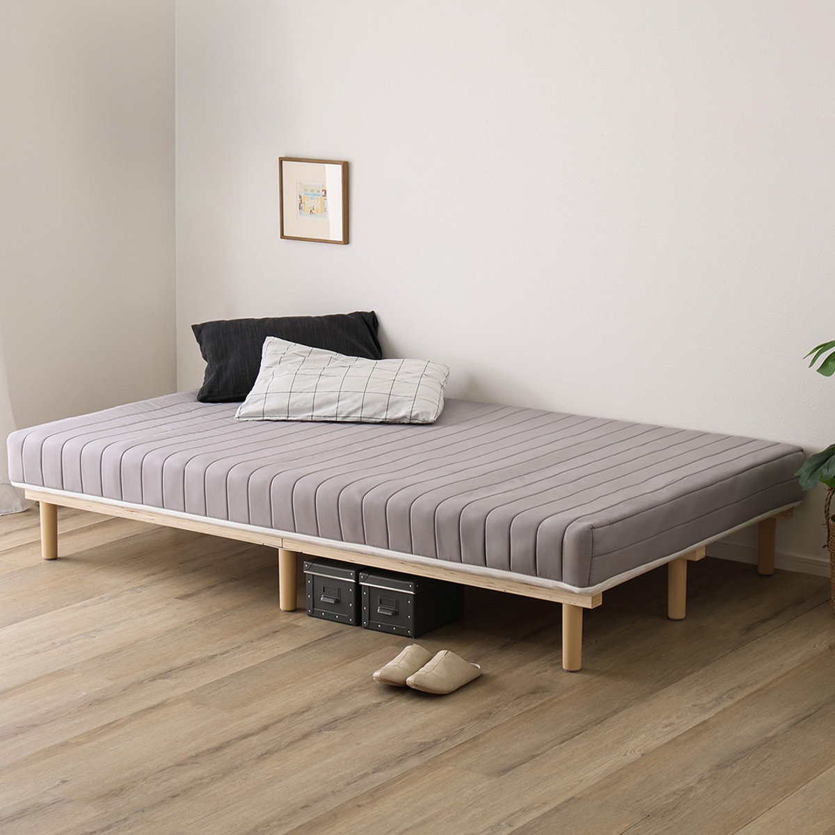 ![]() 省スペースな セミシングル 【▲このページの商品】 | ![]() 1人用標準サイズ シングル | ![]() 1人で広々 セミダブル |
