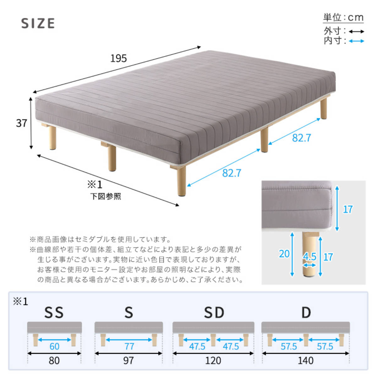| 寝具のサイズ | セミシングル |