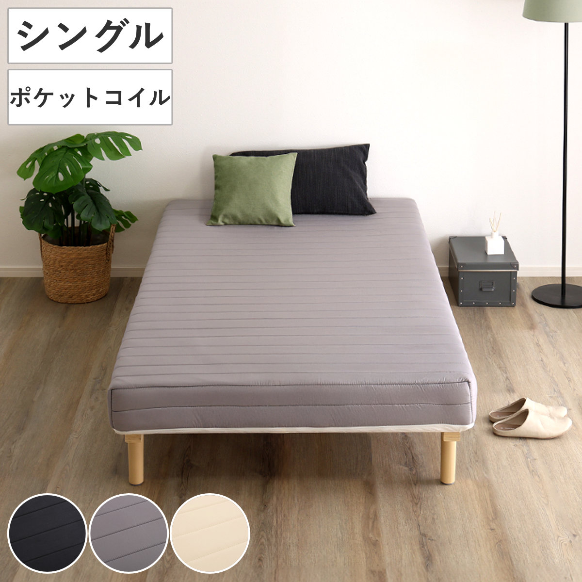 | 材質 | 張り材:ポリエステル100% クッション材:ポケットコイル、ウレタン、フェルト、不織布 本体:LVL、樹脂脚 |