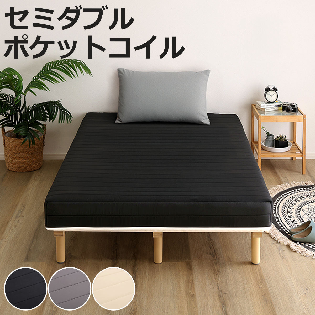 ![]() 省スペースな セミシングル | ![]() 1人用標準サイズ シングル | ![]() 1人で広々 セミダブル 【▲このページの商品】 |