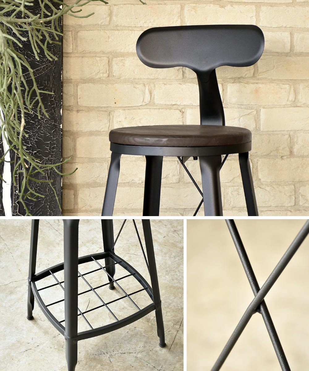 足置き キッチン ヴィンテージ調 チェアー イス 椅子 いす インダストリアル ダイニング 丸椅子 カウンター バー キッチンカウンター スタイリッシュ シンプル おしゃれ お洒落 オシャレ インテリア 家具 マット スチールフレーム 天然木 カフェ 店舗 お店 LH20910