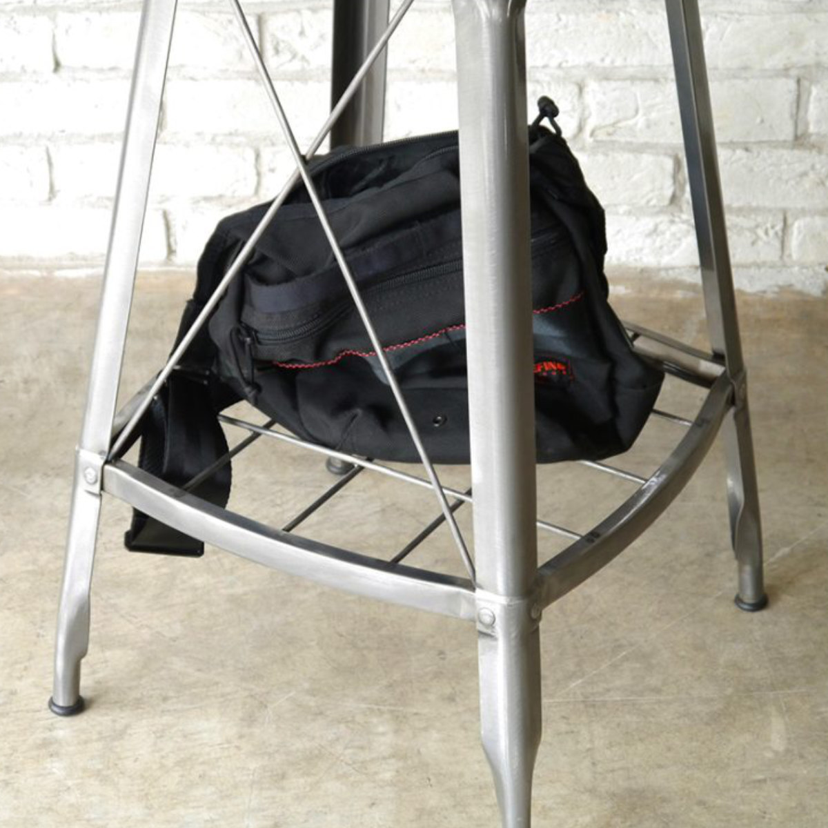 スチール脚にクロスバーを組み合わせたデザイン。抜け感があり圧迫感を抑えながら、雰囲気のある佇まいに。背面から見ても印象的で、空間のアクセントにもなります。