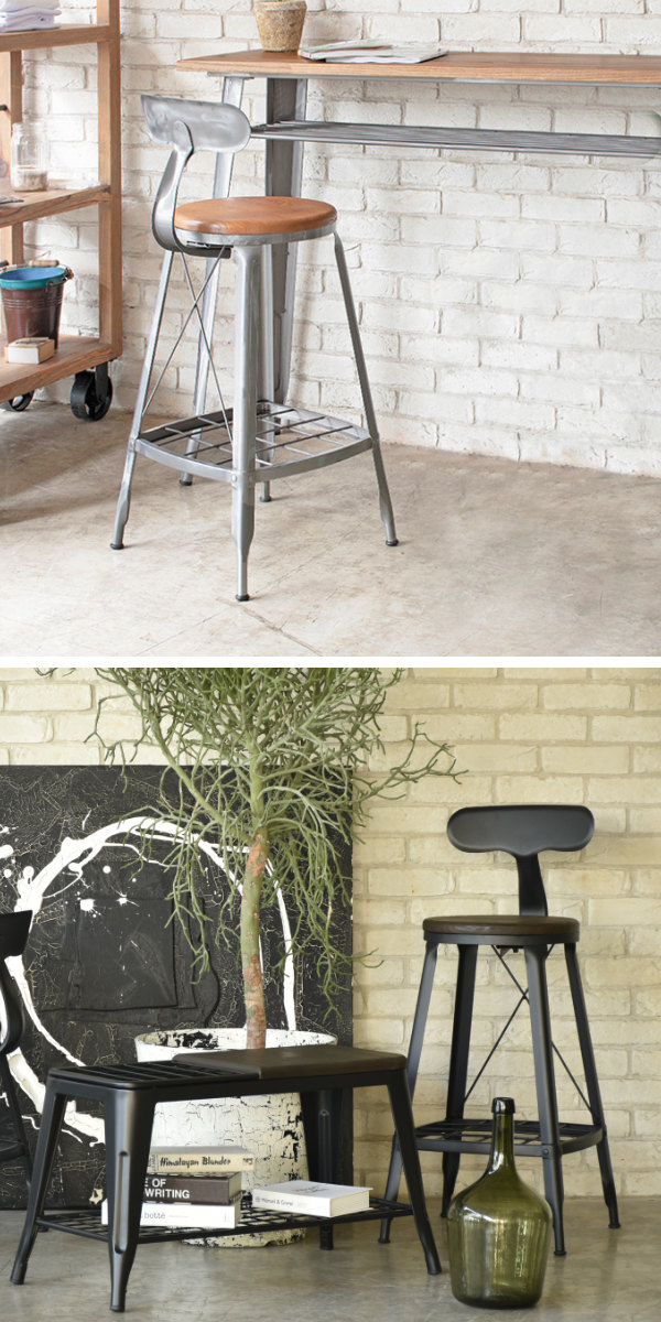 ウッドとスチールを組み合わせた、どこか懐かしさを感じるデザインのハイチェア。使い込んだような風合いが空間になじみつつ、インテリアのアクセントとしても映えるデザインです。