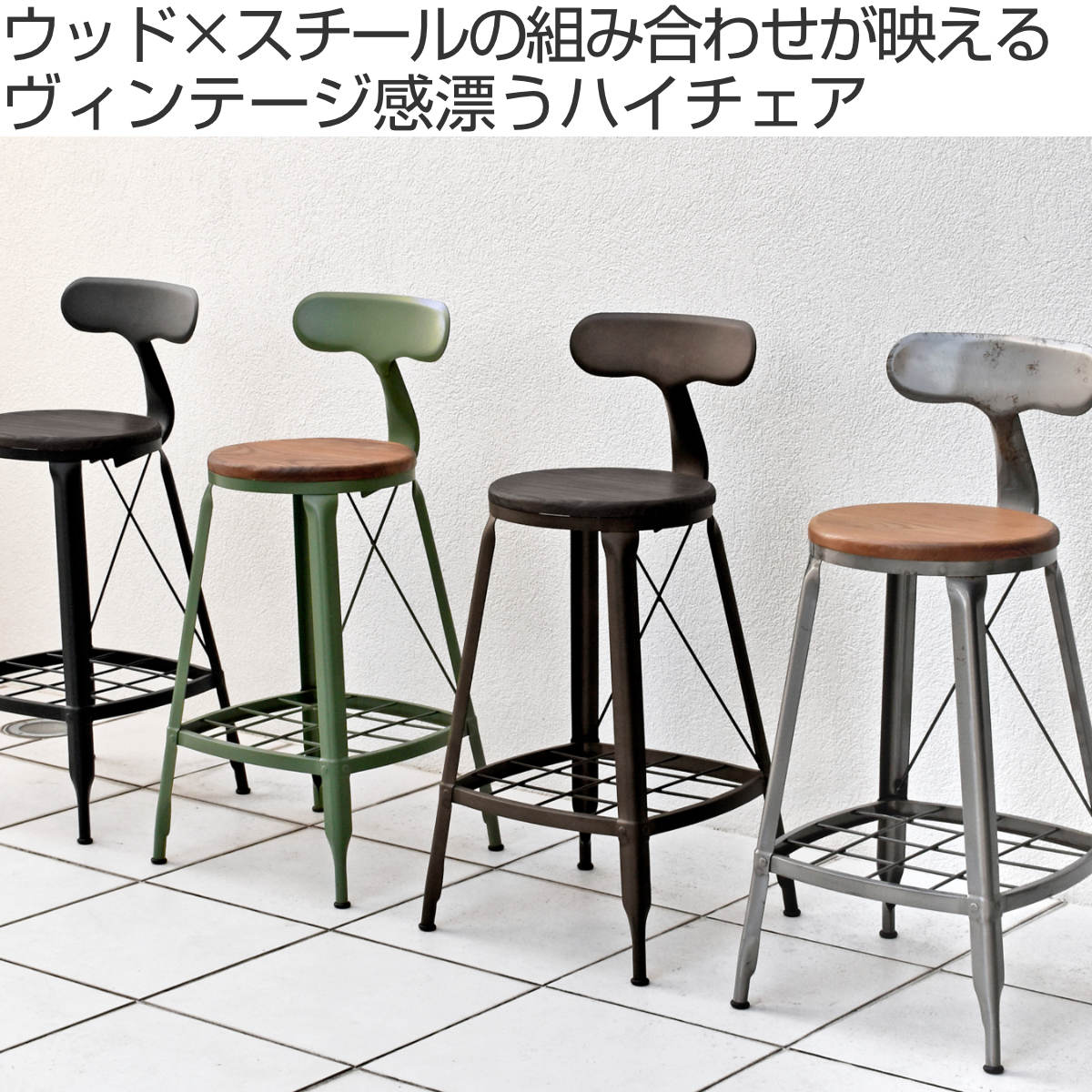 ●ウッド×スチールのヴィンテージ感あるハイチェアです。