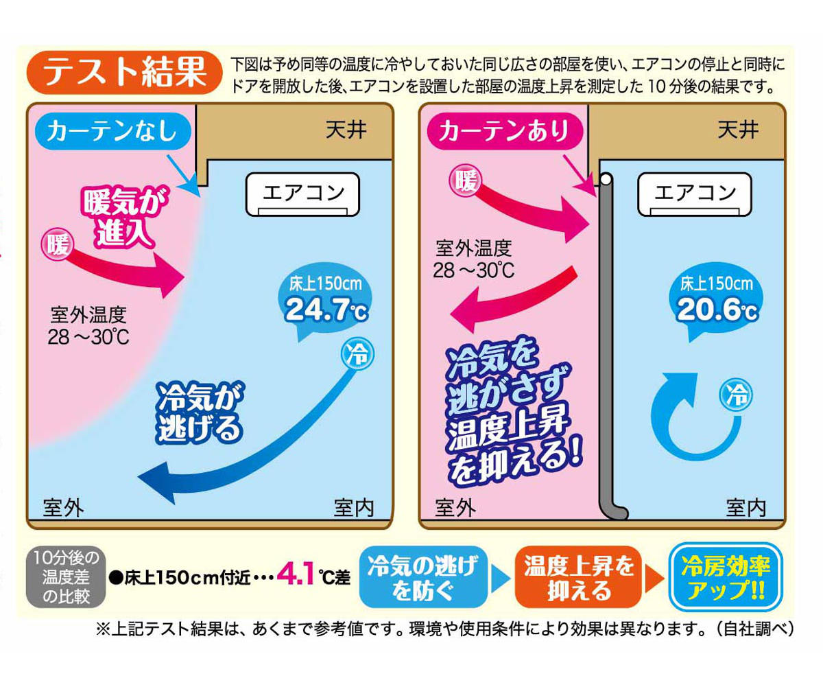 エアコンの冷気を逃がさずに冷房効果アップ●床まで届くロング丈で、エアコンの冷気を逃さずに室内温度の上昇を抑えることができます。