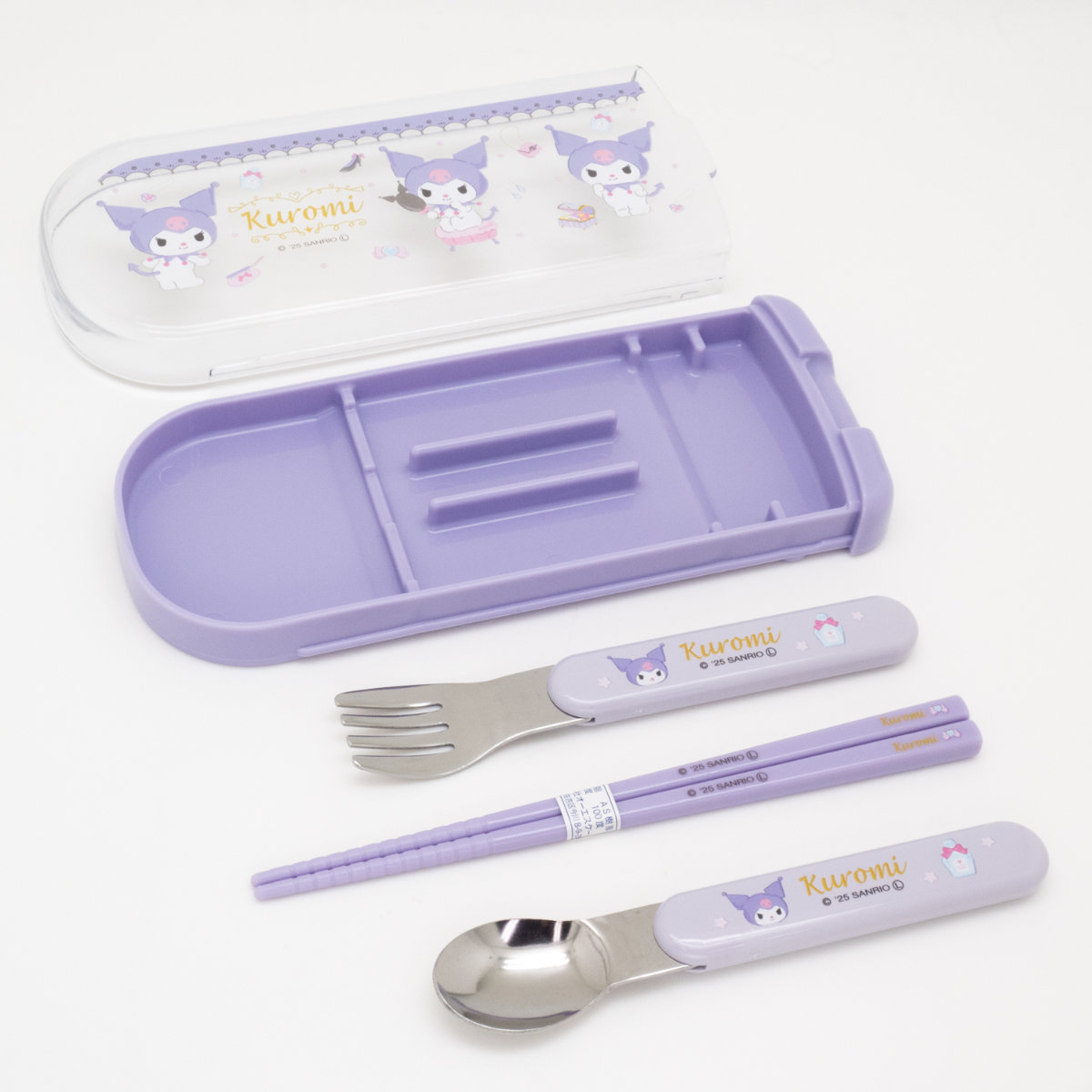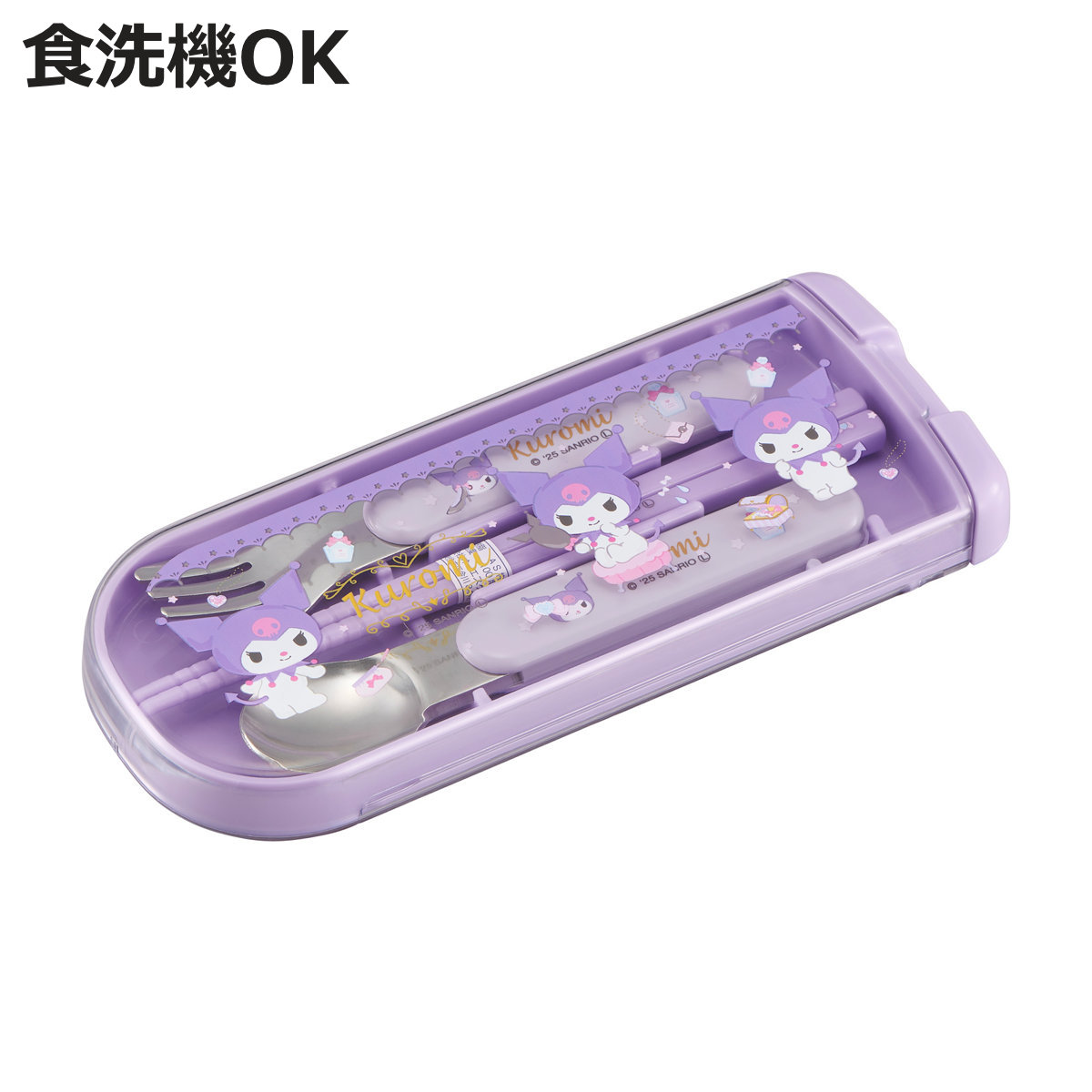 食洗機対応のスライド式で開けやすいトリオセット●ランチタイムに便利な箸・スプーン・フォークの入ったケースセットです。