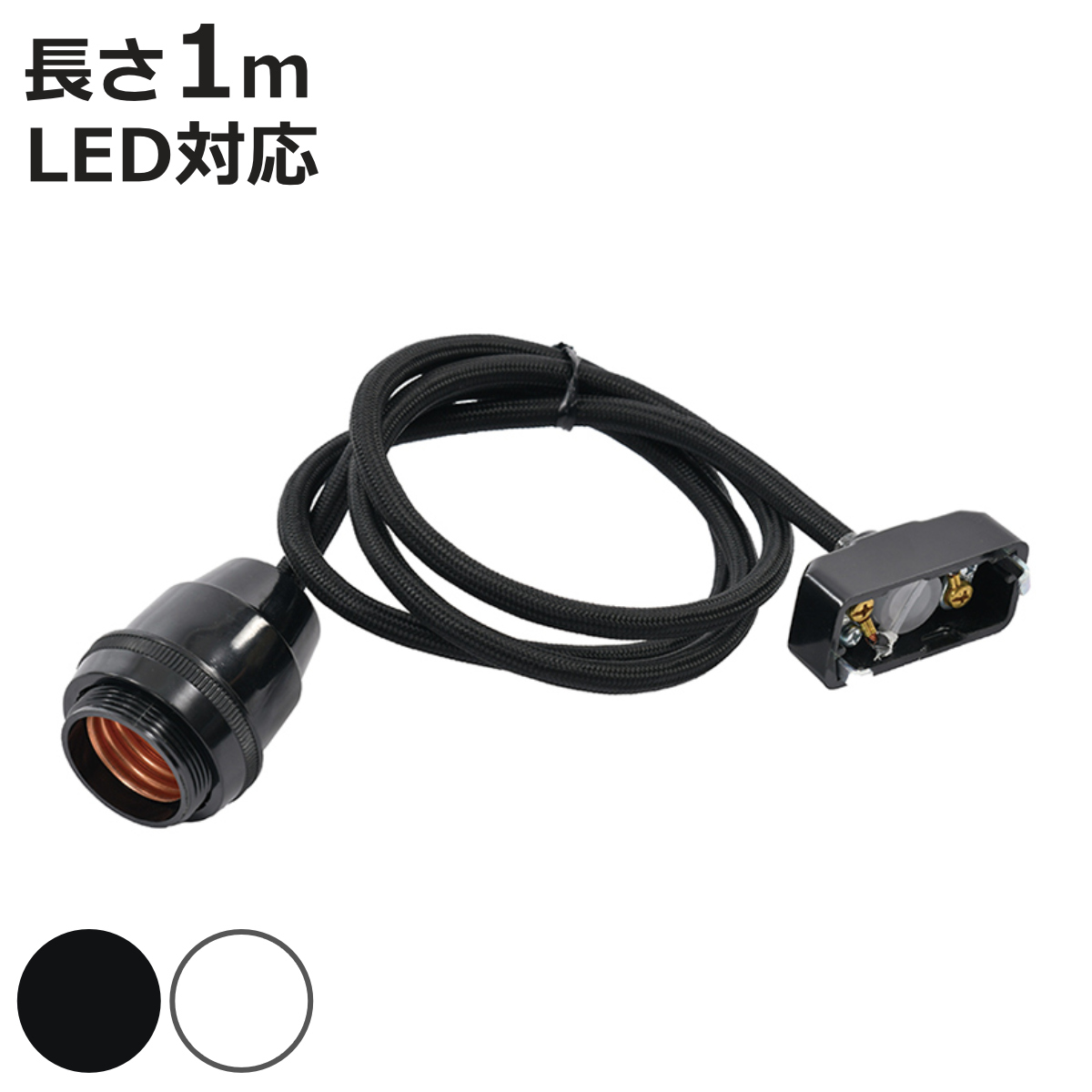 すぐ取り付けられるランプシェード用別売コード 1mすぐ取り付けられるコード付きソケットです。【ラタン ランプシェード】に適した別売コードです。LED電球対応です。