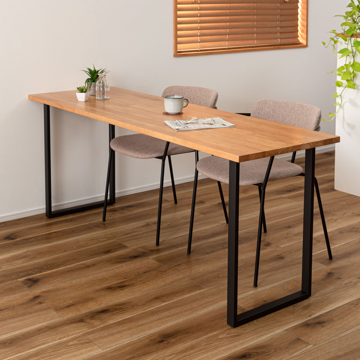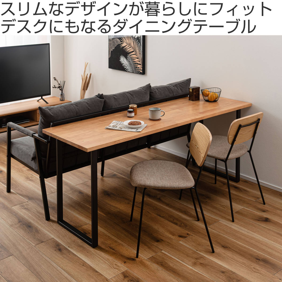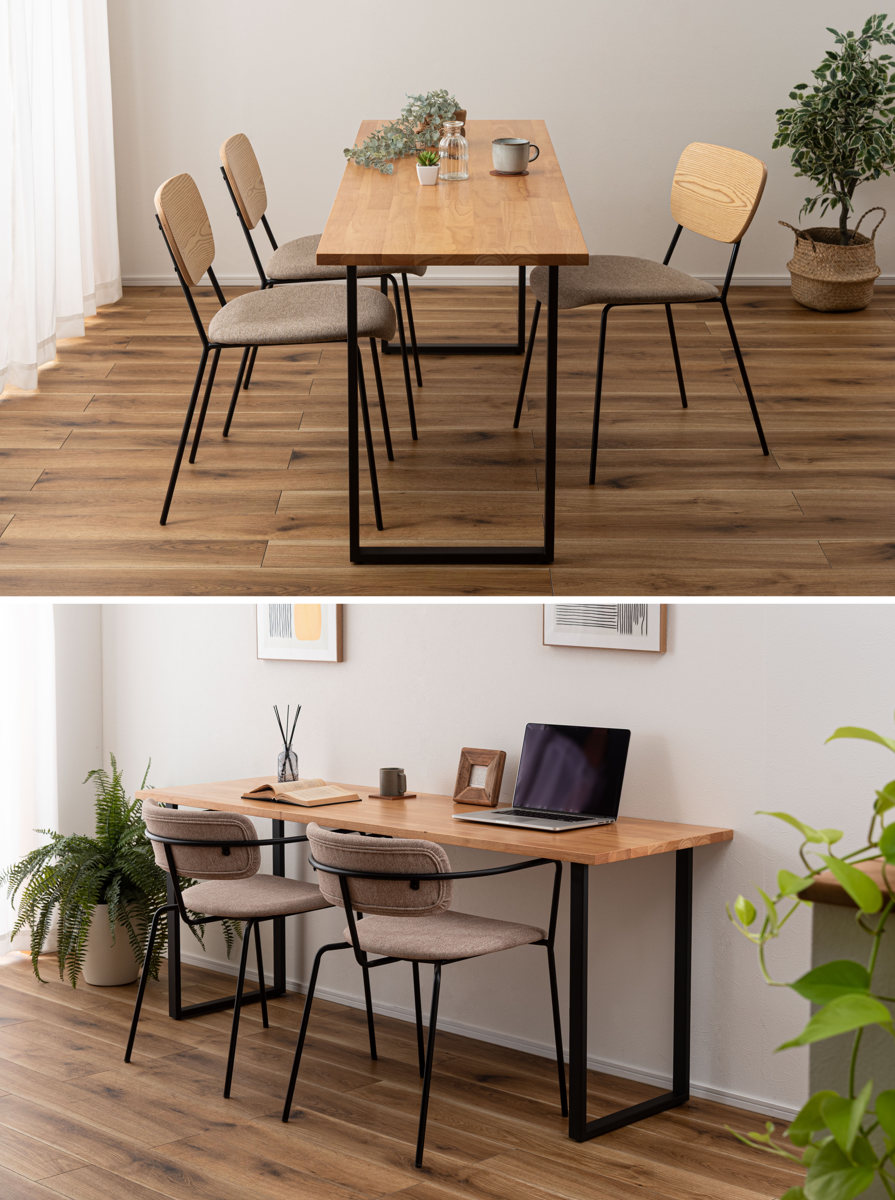 ダイニングテーブルとしてだけでなく、壁に沿わせて設置すればワークスペースとしても快適に使えます。食事の時間も作業の時間もこれ1台で対応可能です。