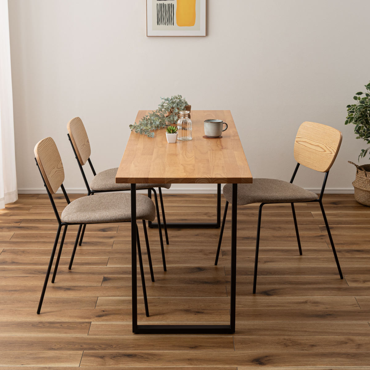 材質/天然木ラバーウッド(ウレタン塗装)、スチール(粉体塗装)