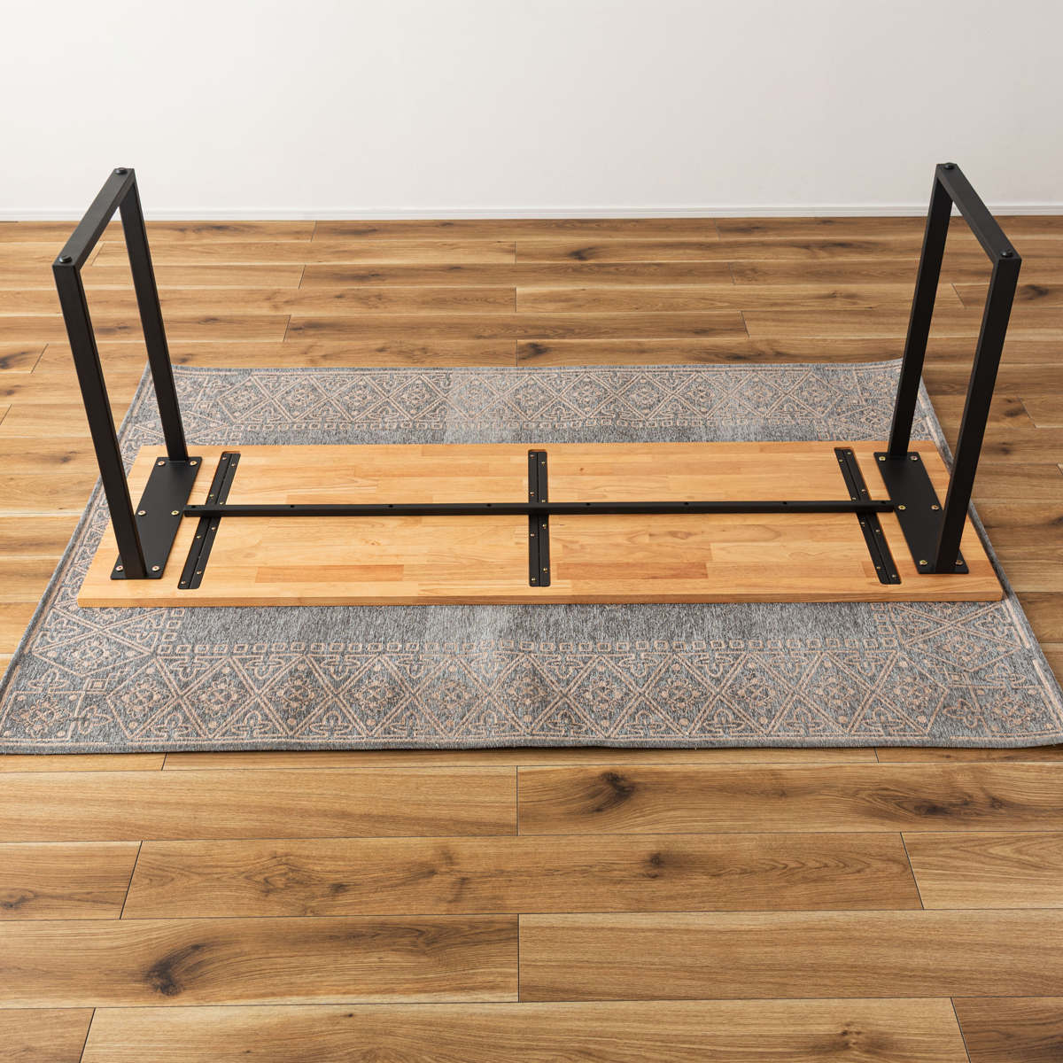 天板に脚を取り付けるだけで完成します。必要な工具は付属しているので、家具の組み立てに慣れていない方でも安心です。