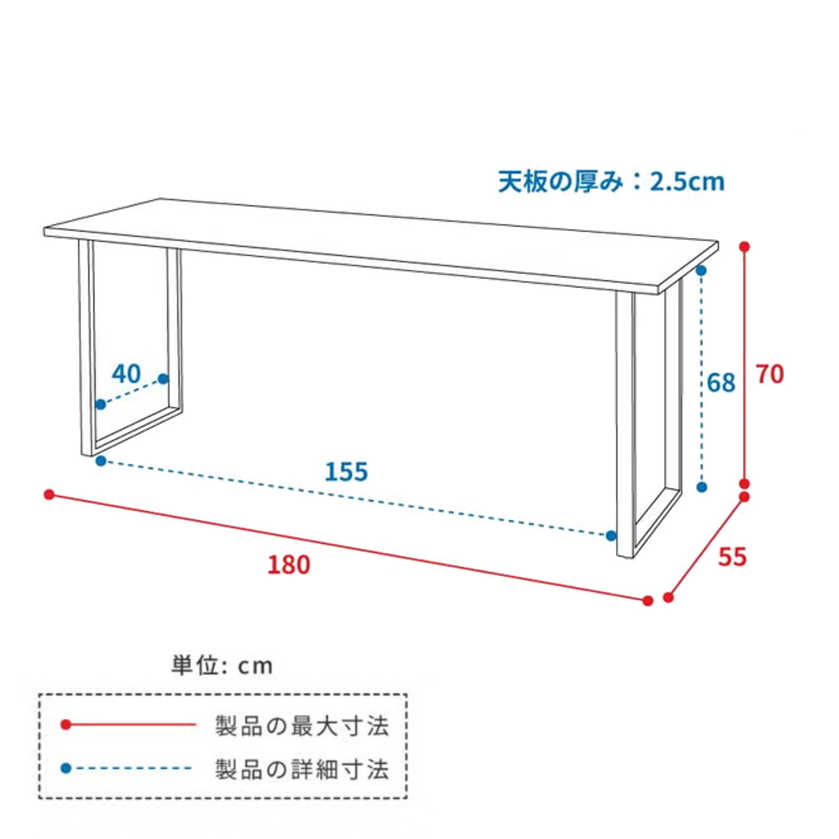 サイズ/約幅180×奥行55×高さ70cm