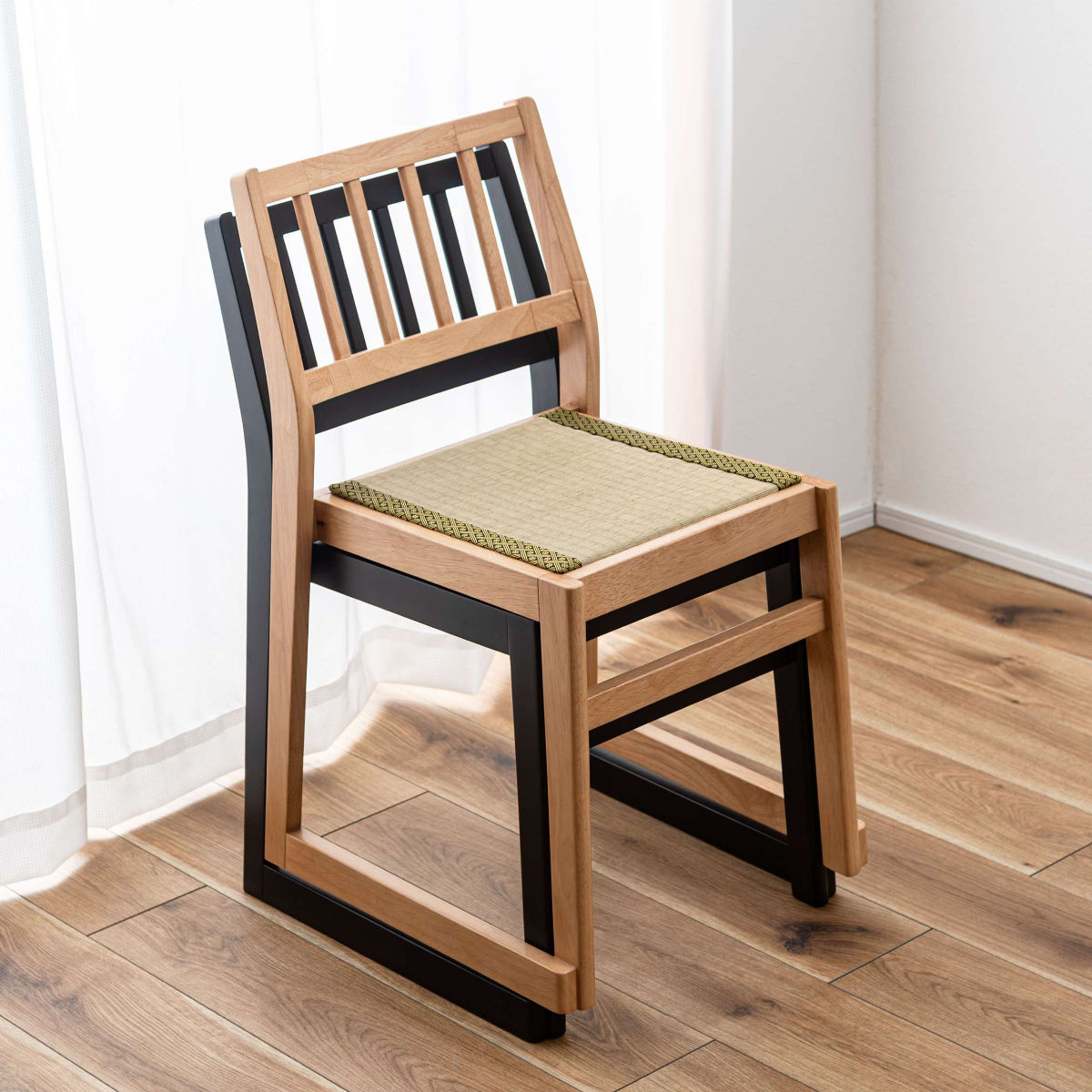 畳の心地よさを日常の空間にさりげなく天然い草のさらりとした肌ざわりと、やさしい座り心地が魅力の畳チェアです。和の趣を感じさせながらも、シンプルなデザインでダイニングやリビングなど、日常の空間に自然となじみます。