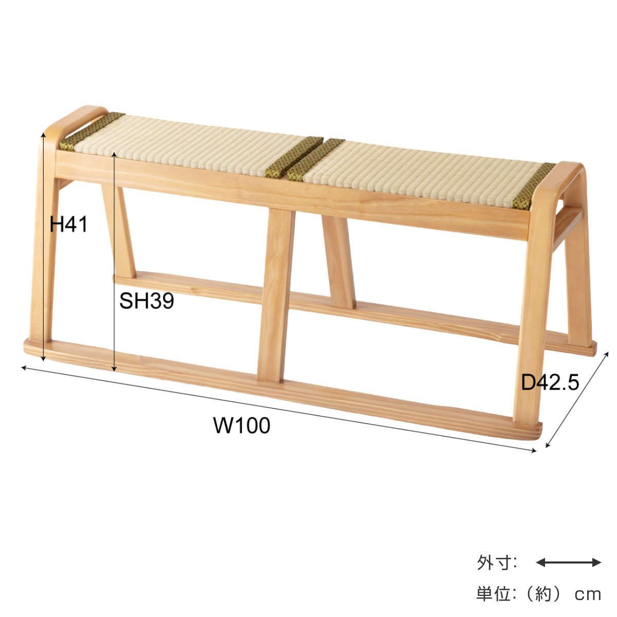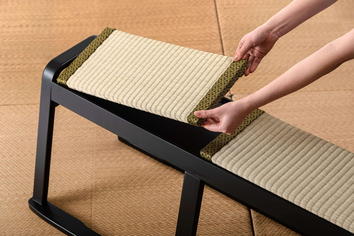 畳の心地よさを日常の空間にさりげなく天然い草のさらりとした肌ざわりと、やさしい座り心地が魅力の畳ベンチです。和の趣を感じさせながらも、シンプルなデザインでダイニングやリビングなど、日常の空間に自然となじみます。