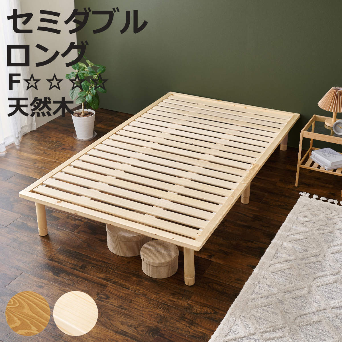 セミダブル ロングナチュラルな風合いがお部屋に馴染むセミダブルロングサイズのベッドフレームです。床面は通気性の良いすのこで、汗や湿気を溜め込まず、年中快適におやすみいただけます。