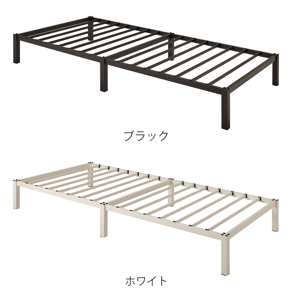![]() ベッドフレーム単品 【▲このページの商品】 | ![]() ボンネルコイルマットレス付き | ![]() ポケットコイルマットレス付き |