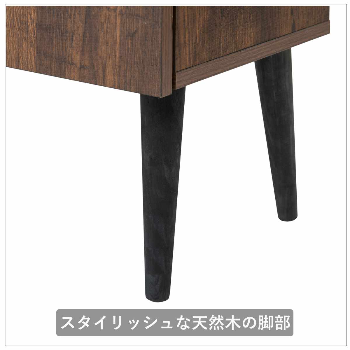 斜めにスラリと伸びたスタイリッシュな脚部は、天然木を使用しており、艶を落とした水性塗装で仕上げています。約20cmと高めの脚部なので、お掃除も楽に行えます。掃除機やモップ等がかけやすく、お掃除ロボットが通ることができるのも嬉しいポイントです。