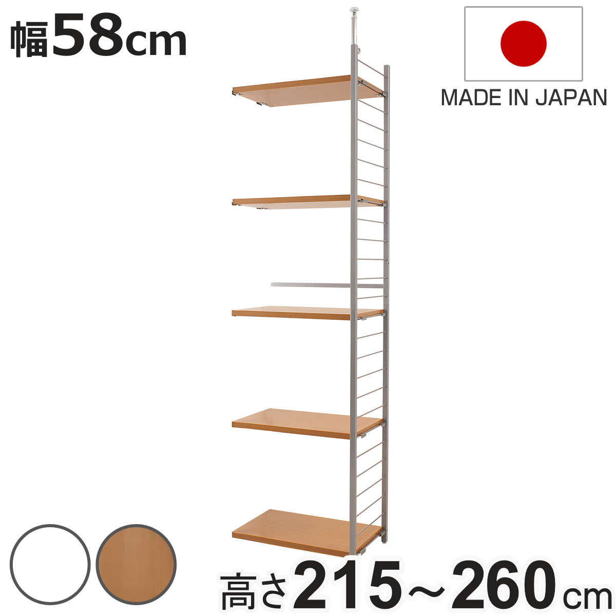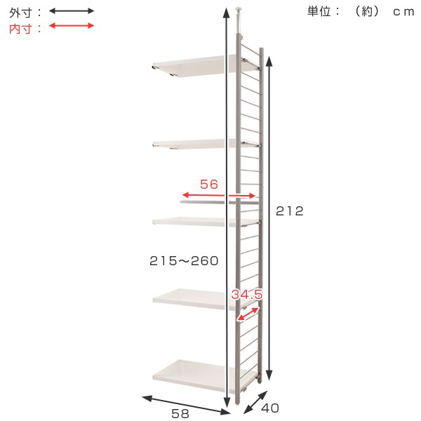 | サイズ | 本体:(約)幅58×奥行40×高さ215〜260(cm) 収納部内寸:(約)幅56×奥行34.5×高さ8(cm) |