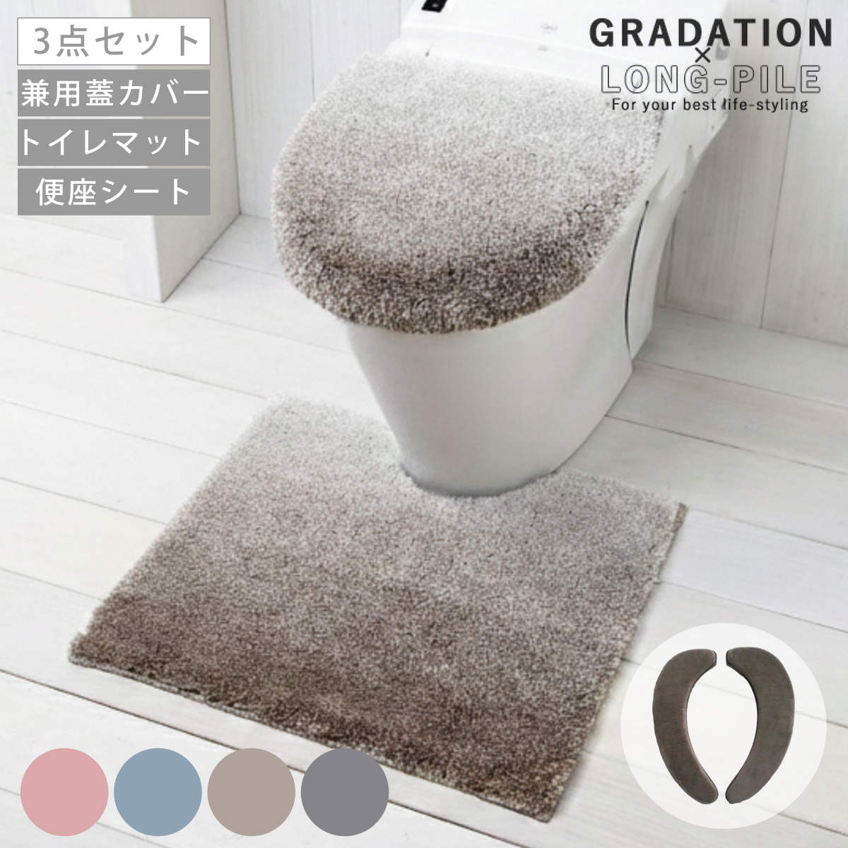 ![]() 兼用蓋カバー | ![]() トイレマット | ![]() 便座シート |