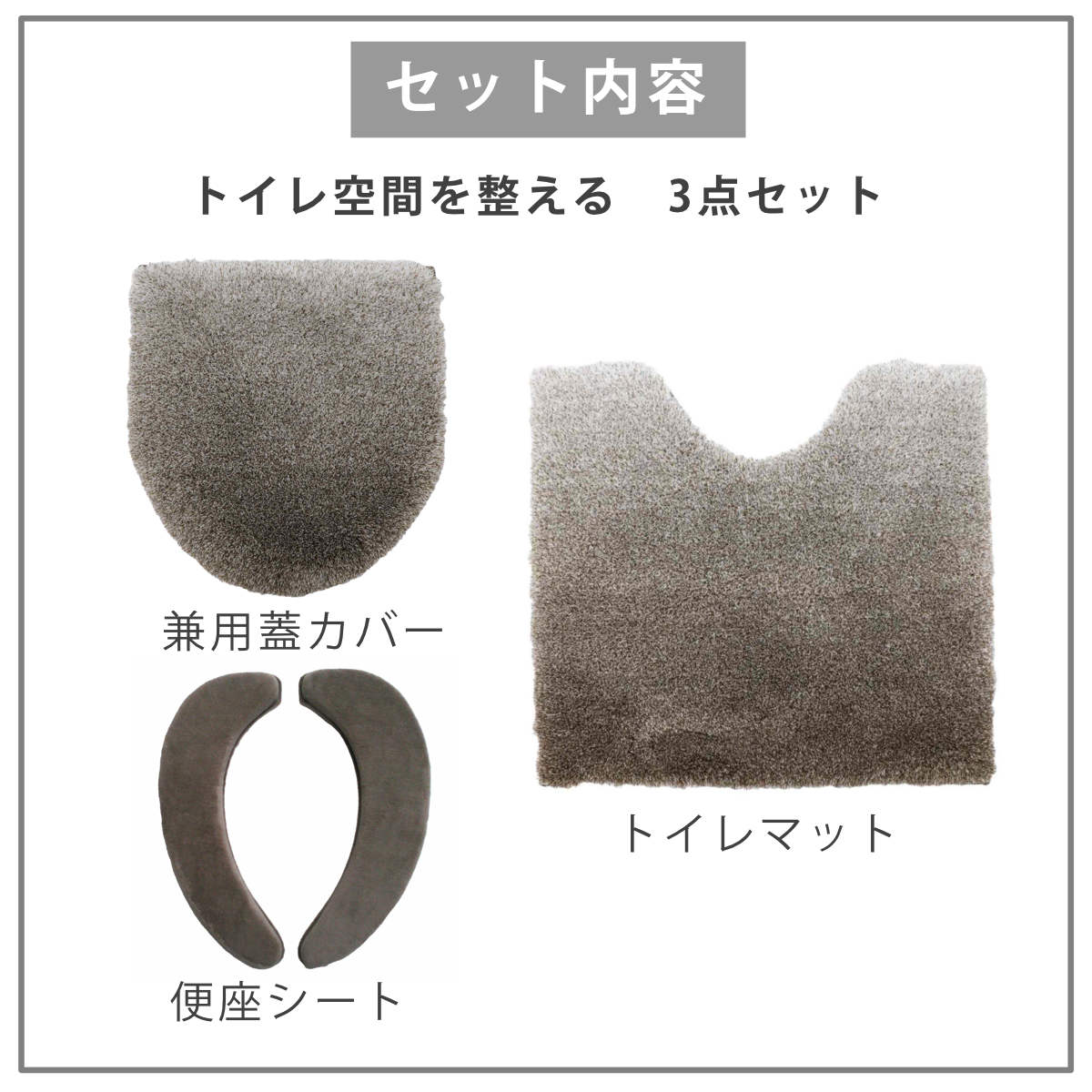 | 内容量 | 3点セット (兼用蓋カバー、トイレマット、便座シート) |