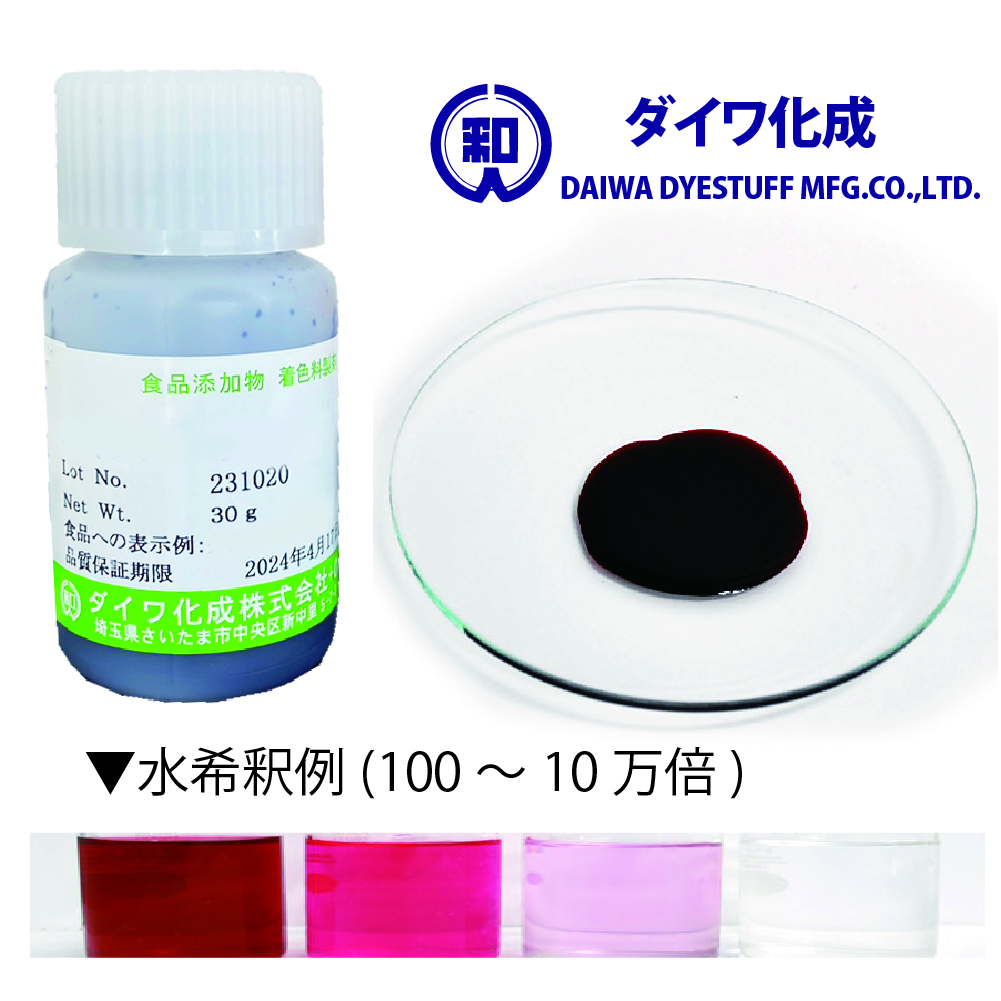 | 色調 | 本品は、水に溶けて赤紫色(ピンク)を呈します。 | |||||