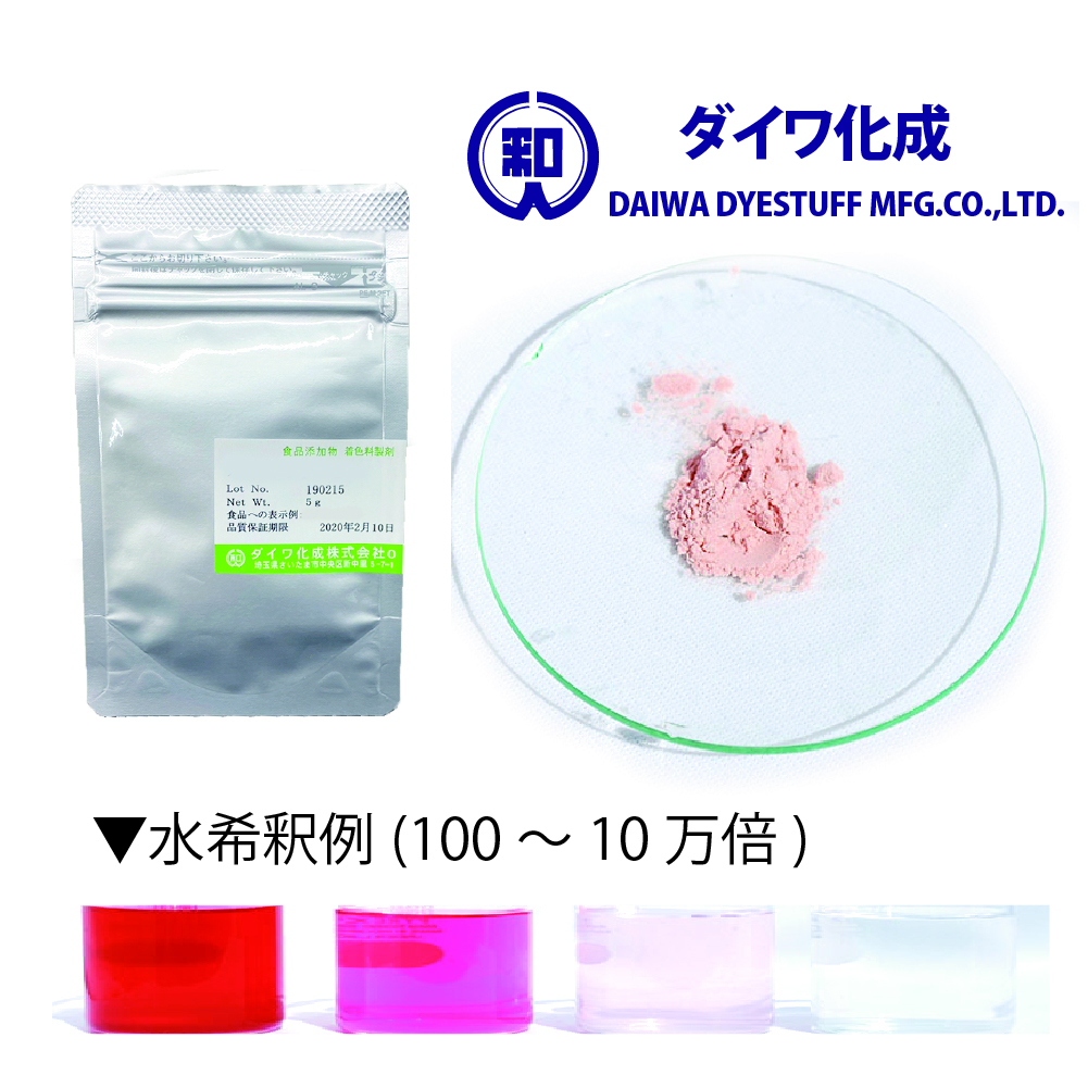 | 色調 | 水に溶けて赤色を呈します | |||||