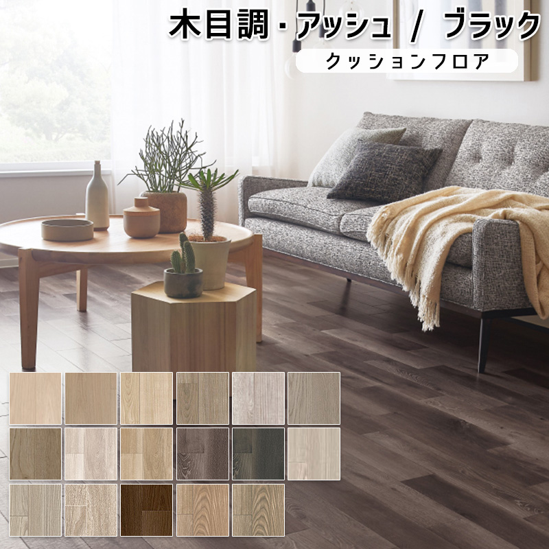 クッションフロア マット 幅182cm 長さ1m以上〜10cm単位 切り売り アッシュウッド 木目調 フローリング 風 グレー ブラック くすみカラー DIY 床シート