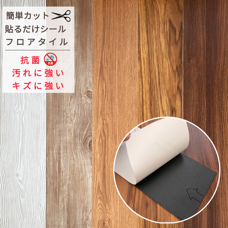 フロアシート 抗菌 貼るだけ シール式 フローリング 22枚入 約2畳分 約3.3平米分 耐傷性 塩ビタイル フロアタイル 木目調 床材 DIY floorstickers