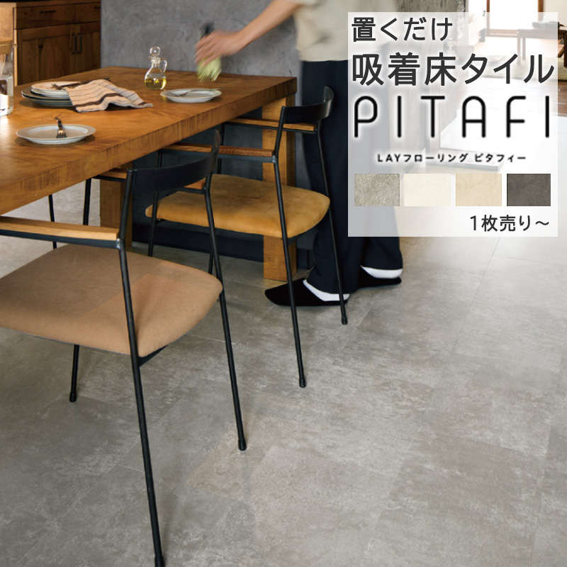 東リ ピタフィー 石目調 1枚売り既存床の上から施工しやすい、住宅用の吸着式フロアタイルです。