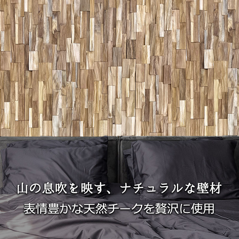 ウッドタイル ウッドパネル 10枚入り 壁 天然木 バリ風 3Dウッド 断熱 壁材 木材 チーク材 DIY おしゃれ エスニック アジアン ウッドモザイク ロックンウォール