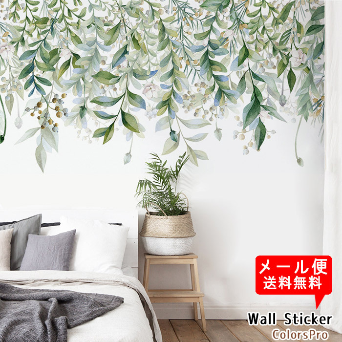 水彩風でかかれた植物がモチーフのウォールステッカーです。色がきれいで優しい雰囲気があります。