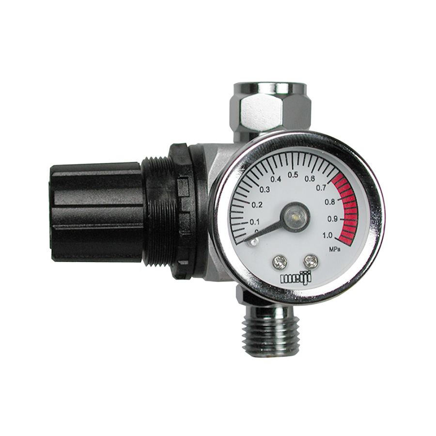 ●ガン手元にレギュレータを装備することにより、コンプレッサのON-OFFロード間の圧力変動(0.2MPa程度)の影響を受けずに、一定の圧力と空気使用量で安定した塗装が行えます。